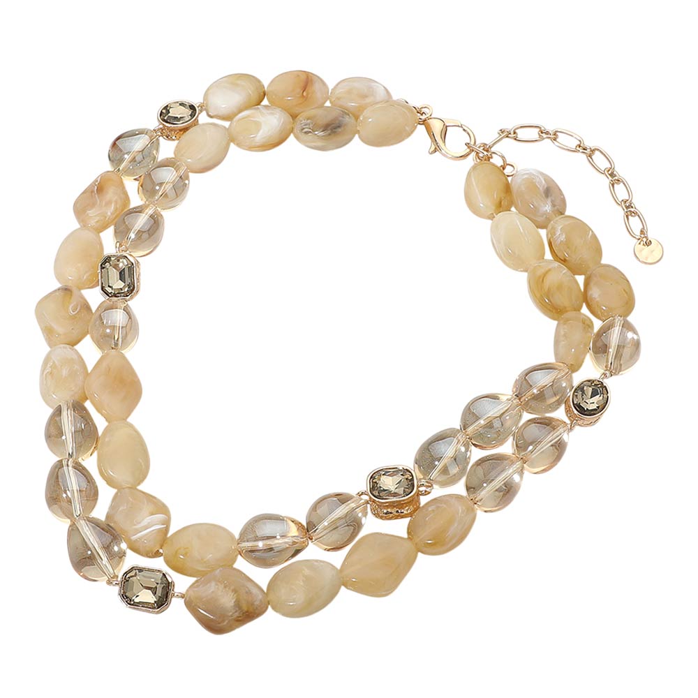 Details • Necklace Size : 17.5" + 3.75" L • Decor Size : 1.4" L • Elegant layered necklace featuring smooth bead strands with faceted accent details and an adjustable extension chain for a comfortable fit. The layered silhouette adds depth and visual interest, making it ideal for everyday styling or elevated looks. Designed to pair effortlessly with casual outfits, workwear, or evening ensembles, this versatile necklace brings a refined yet modern touch to any jewelry collection. • Lead and Nickel Compliant