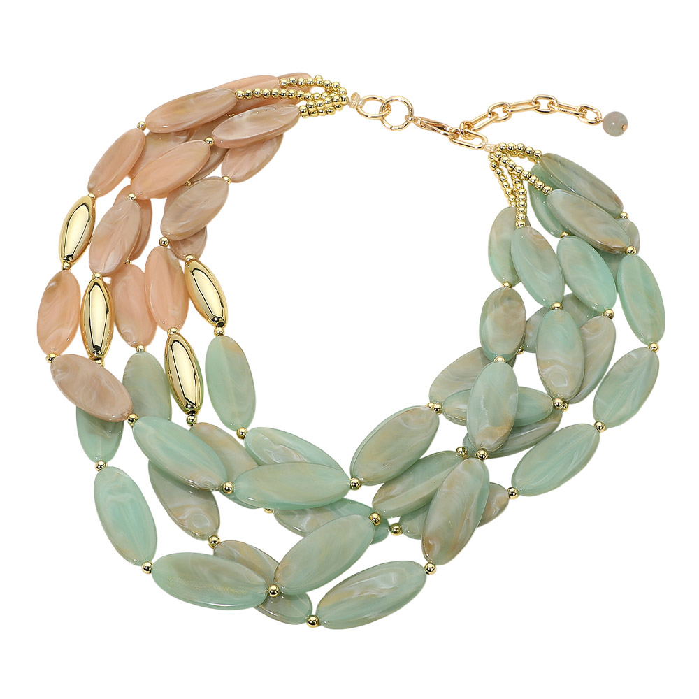 Bold Marbled Resin Oval Beaded Multi Layered Statement Necklace