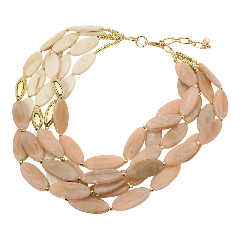 Bold Marbled Resin Oval Beaded Multi Layered Statement Necklace Bold Marbled Resin Oval Beaded Multi Layered Statement Necklace