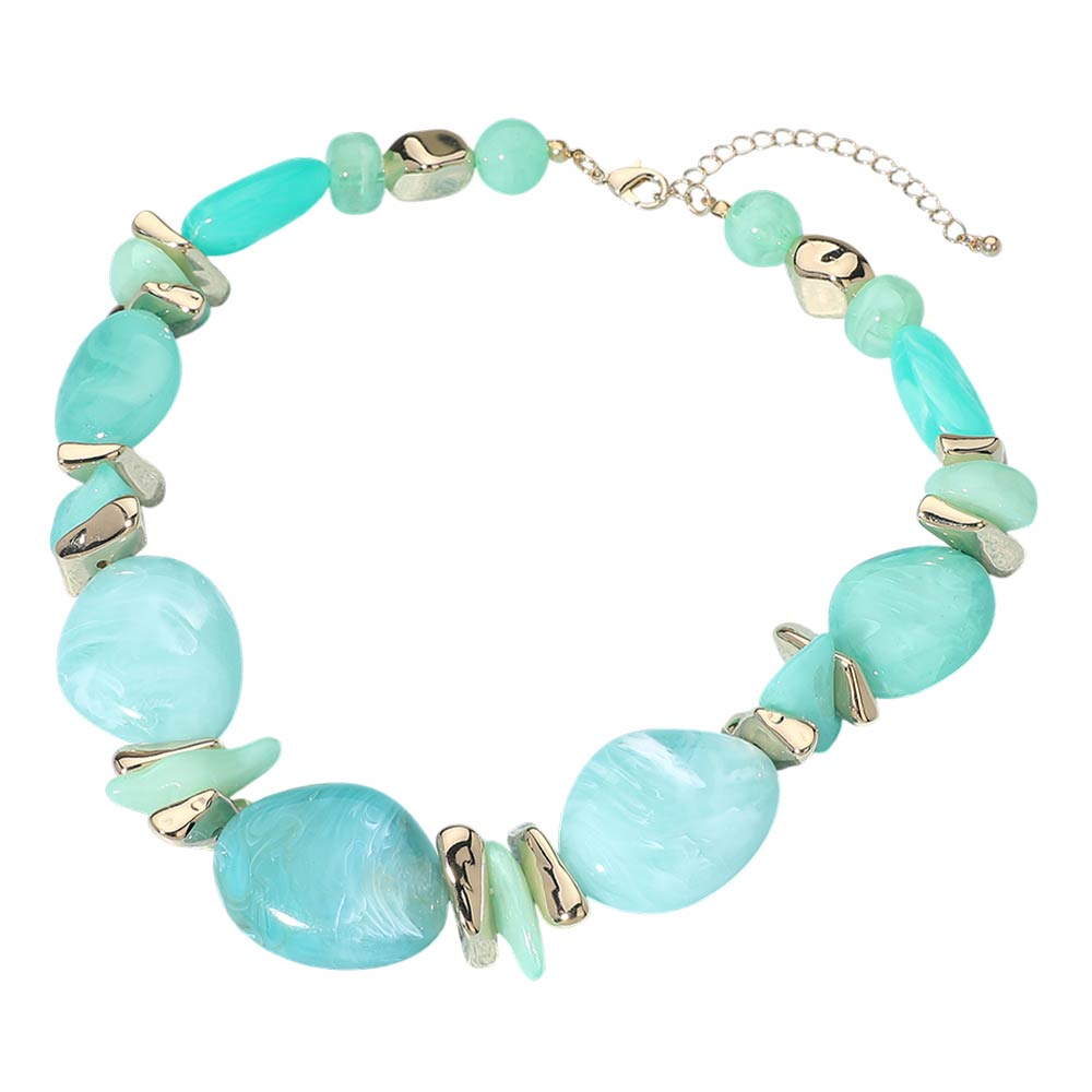 Bold Marbled Resin Pebble Beaded Statement Necklace