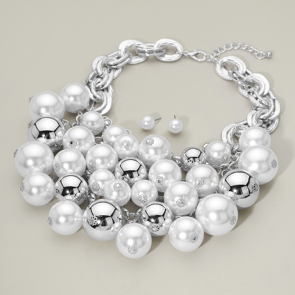 Bold Oversized Beads Embellished Collar Statement Necklace