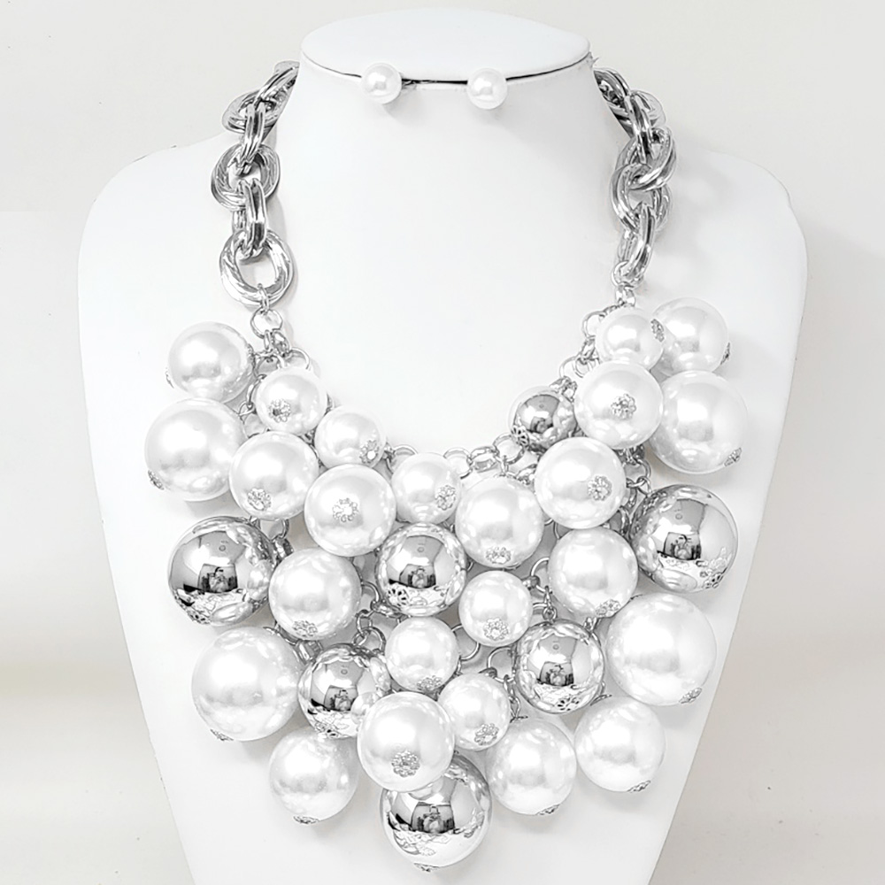 • Make a striking impression with this bold statement necklace designed with oversized reflective beads and chunky chain links. Perfect for glamorous evenings or standout fashion looks, this dramatic piece brings shine, sophistication, and modern edge to any outfit.