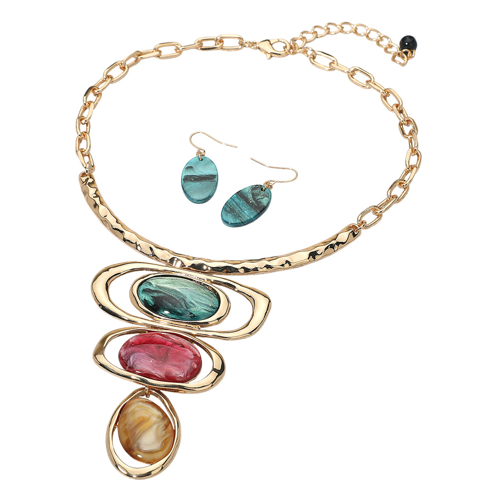 Bold Resin Geometric Pendant Accent Statement Necklace