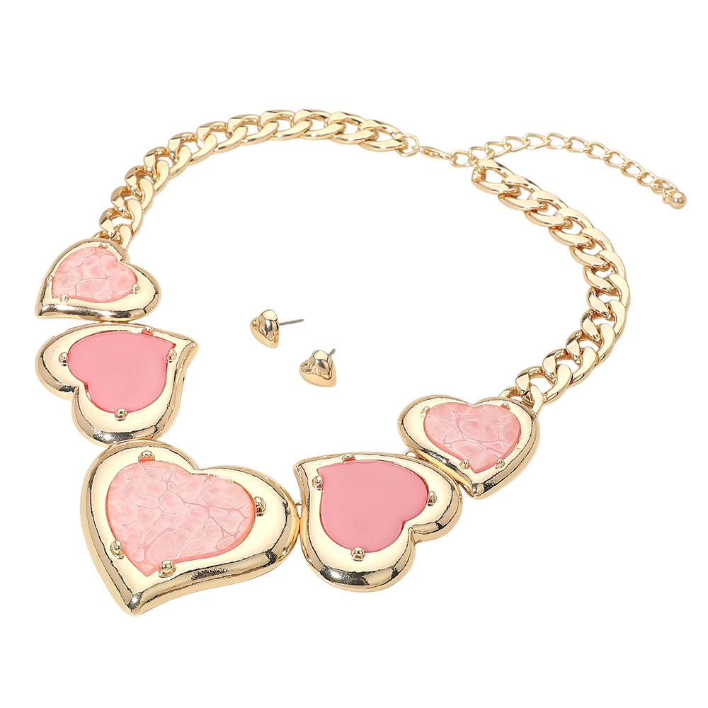Bold Resin Heart Plate Link Chunky Chain Statement Necklace
