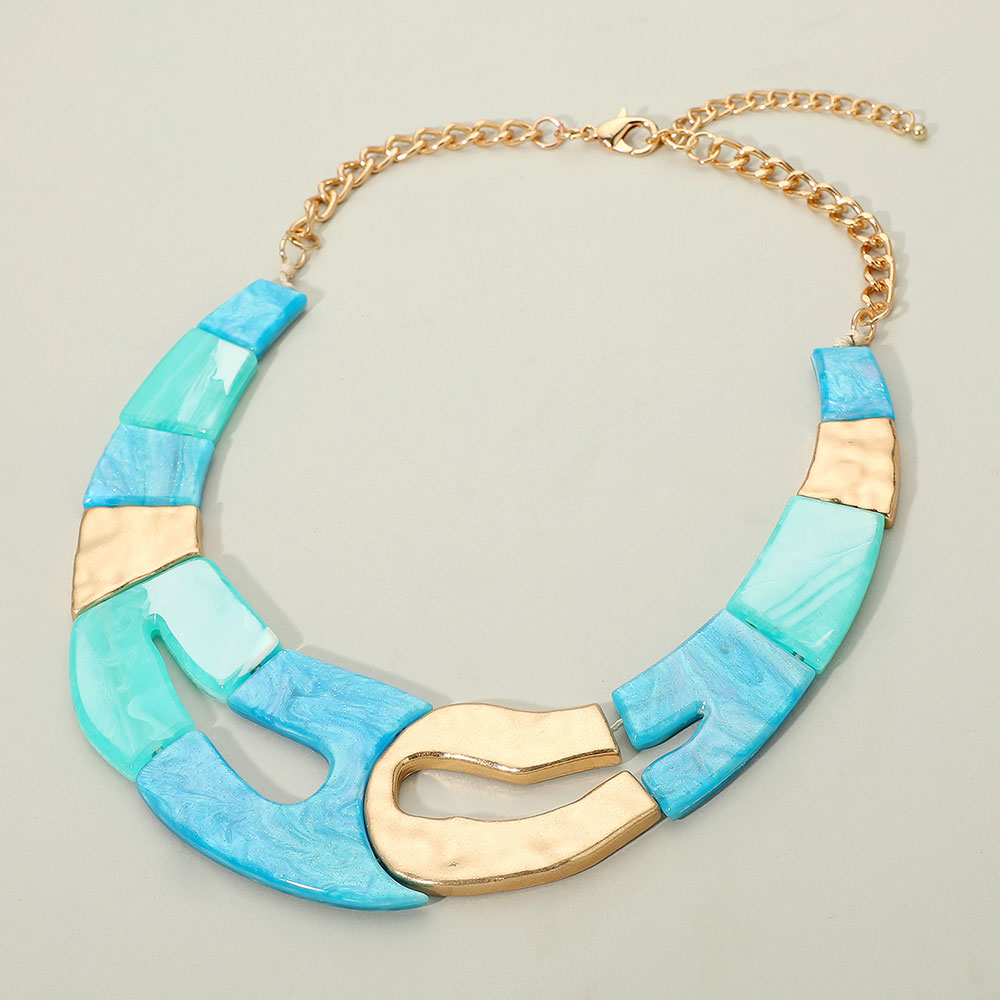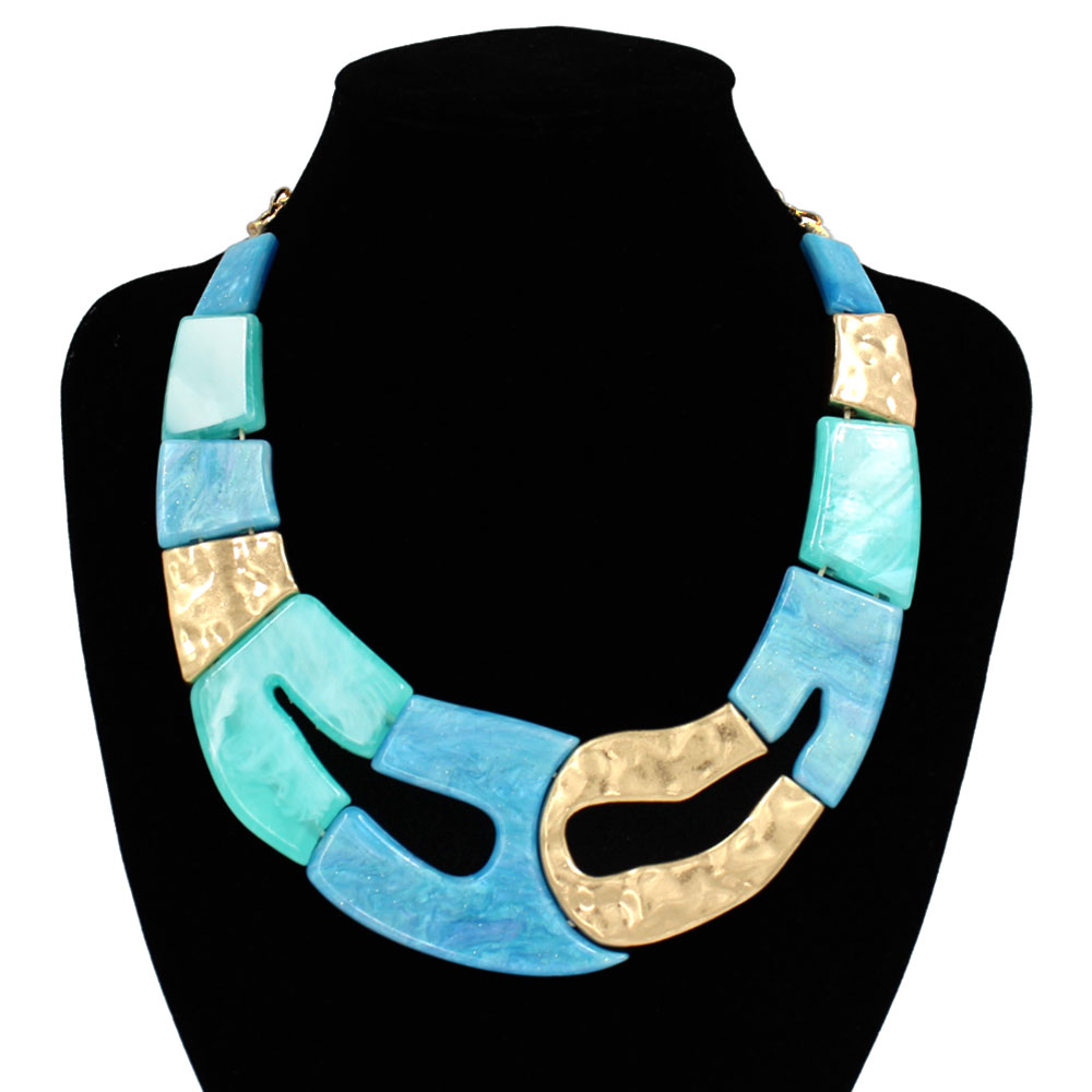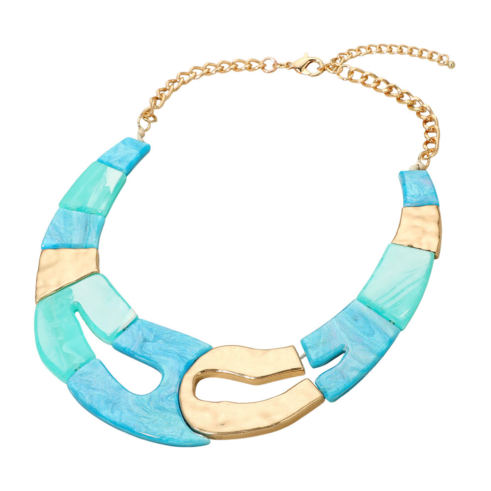 Details • Necklace Size : 19" + 3" L • Decor Size : 2" L • Modern statement necklace featuring bold geometric links in a linked design with contrasting textures. A striking accessory that adds artistic flair and sophistication, perfect for elevating casual outfits or making a dramatic impression with evening wear. • Lead and Nickel Compliant