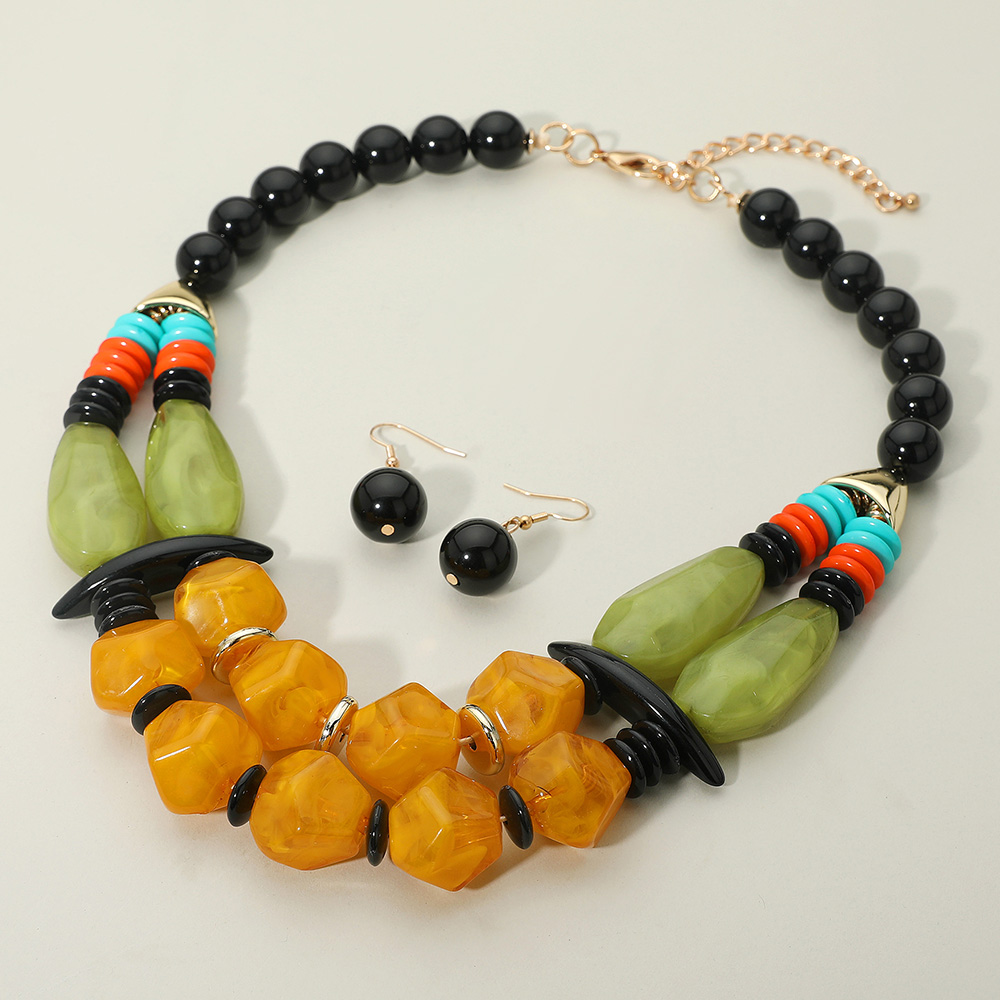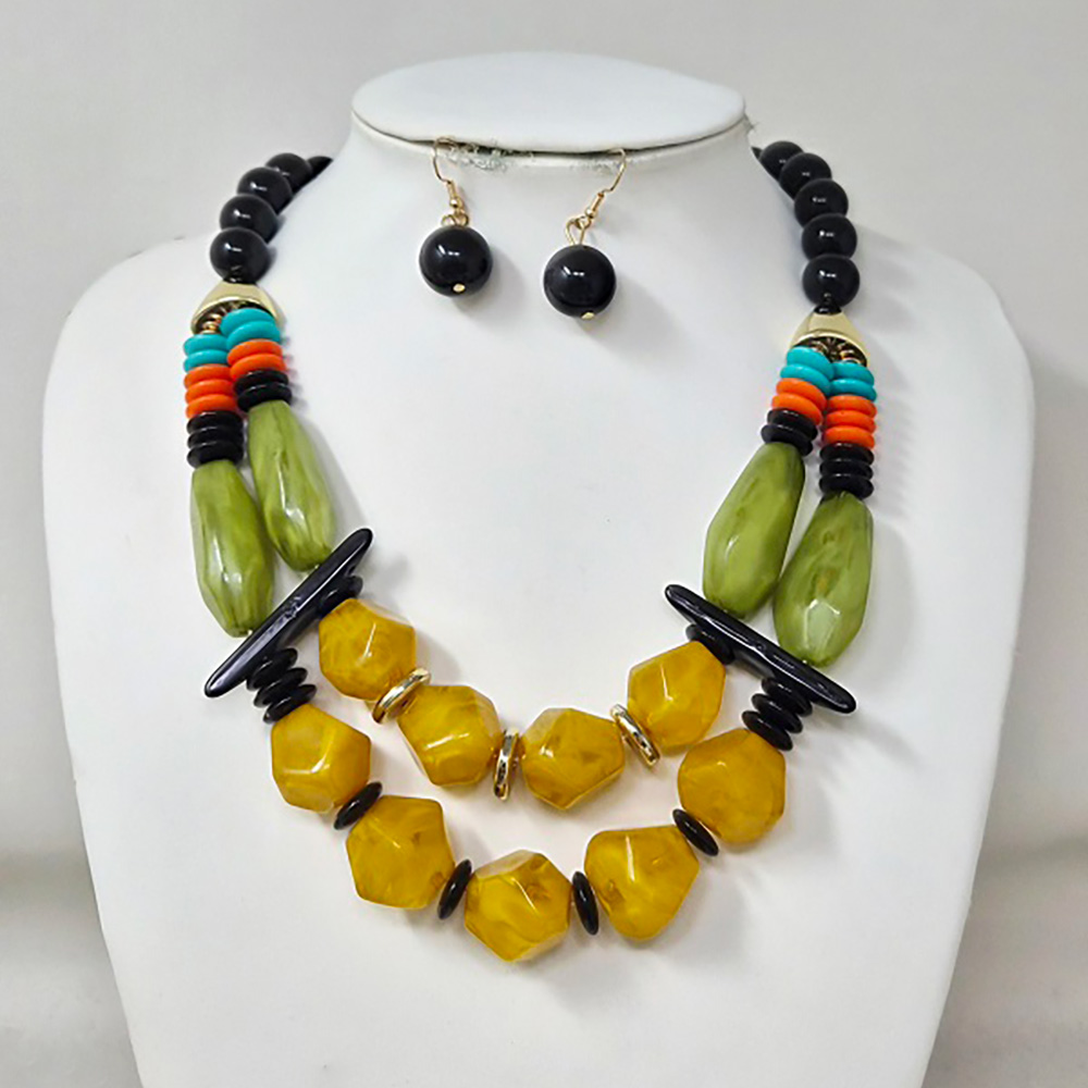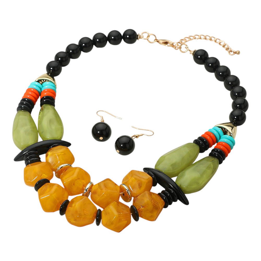 Bold Resin Pebble Beaded Layered Statement Necklace