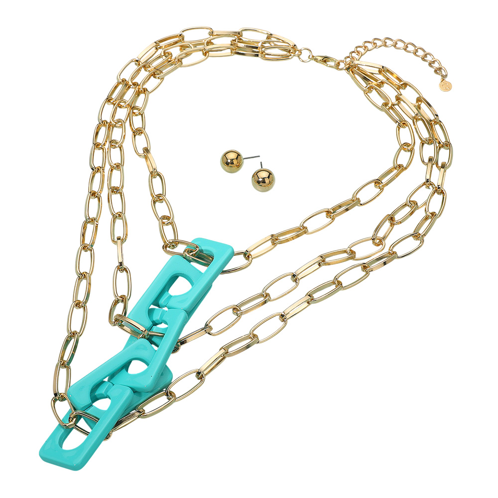 Bold Resin Square Chain Link Accent Paperclip Chin Layered Statement Necklace