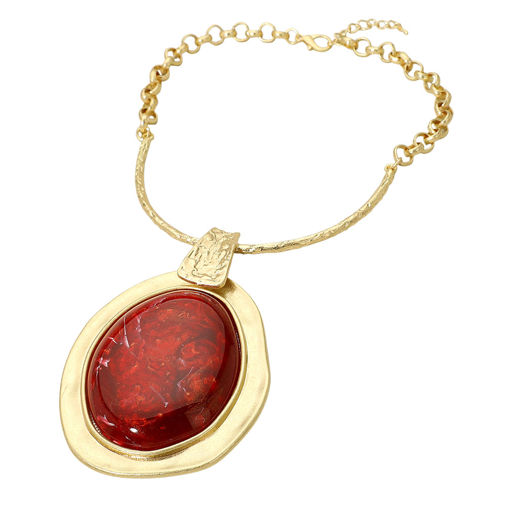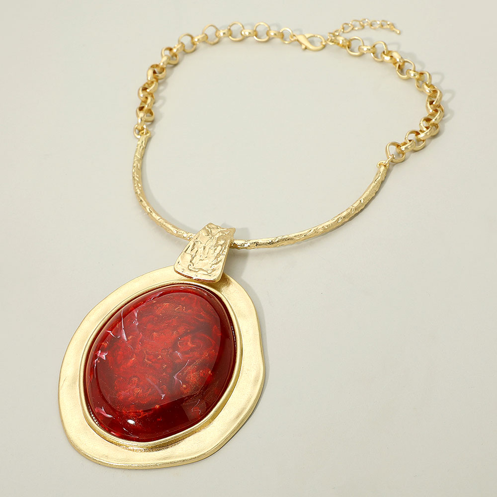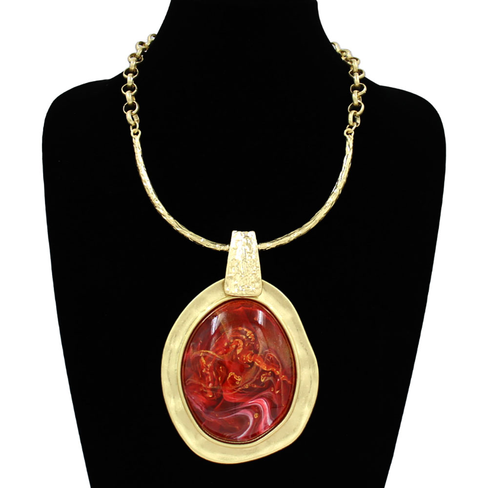Bold Sculptural Oval Resin Plate Pendant Accent Statement Necklace