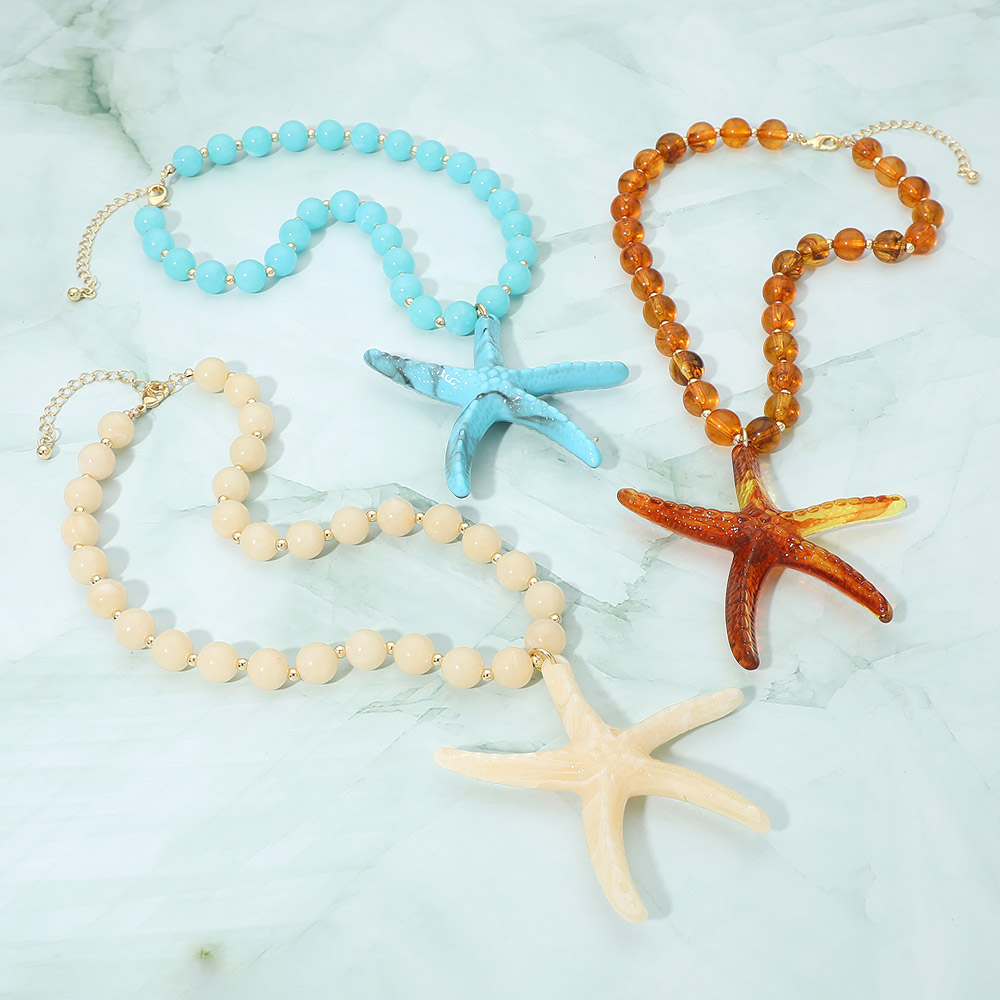 • Eye-catching statement necklace featuring a bold starfish pendant paired with smooth beaded detailing and an adjustable chain for versatile styling. A standout accessory for beach-inspired looks, resort wear, summer outfits, and casual fashion, perfect for adding playful charm and a coastal-inspired accent.