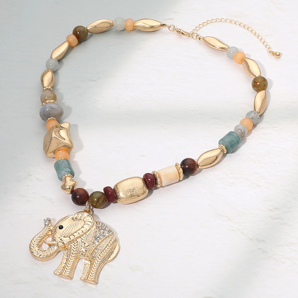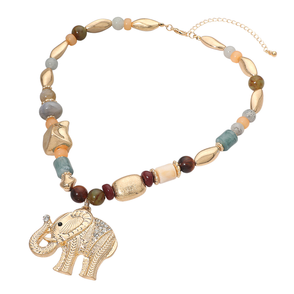 Bold Stone Paved Elephant Pendant Accent Multi Pebble Beaded Statement Necklace Bold Stone Paved Elephant Pendant Accent Multi Pebble Beaded Statement Necklace Bold Stone Paved Elephant Pendant Accent Multi Pebble Beaded Statement Necklace