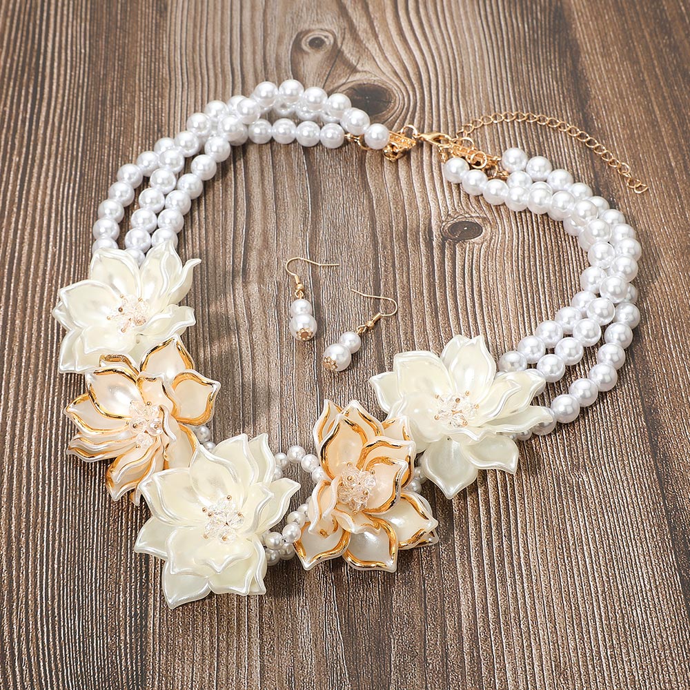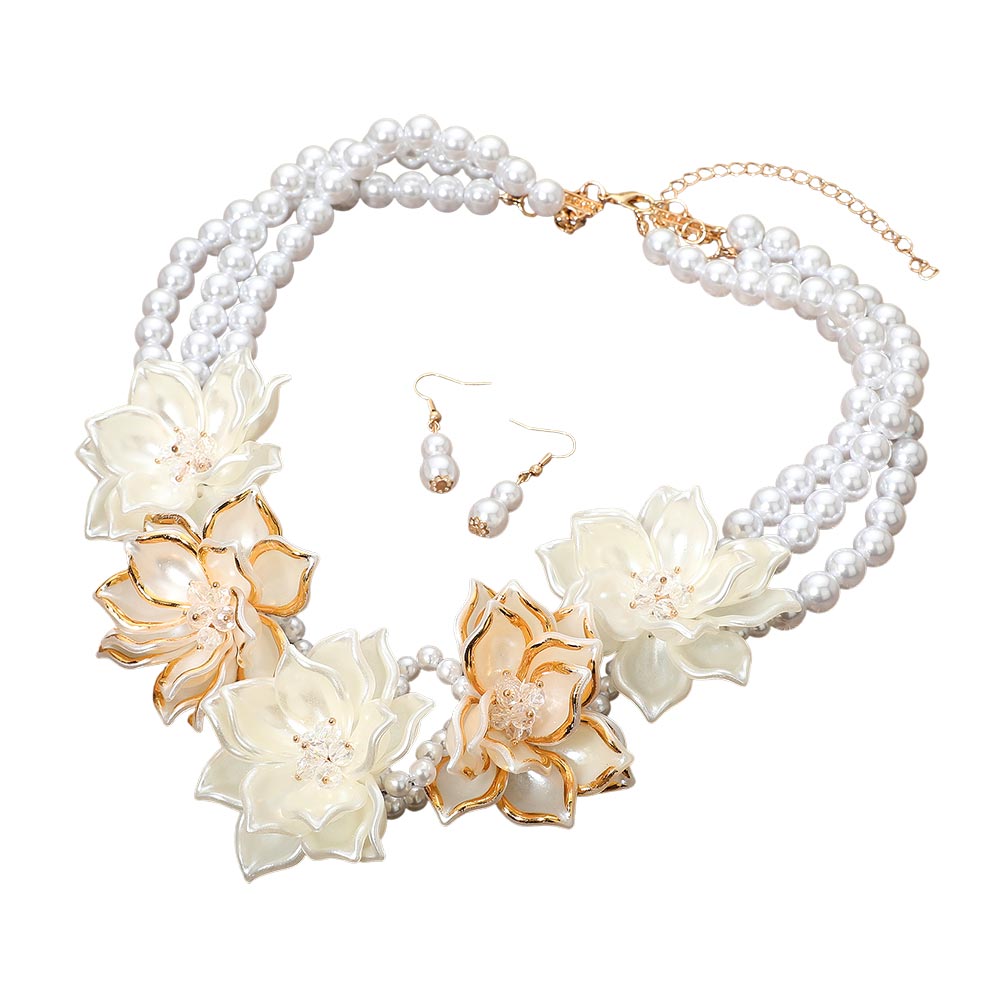 • An elegant multi-strand necklace set featuring layered floral accents and coordinating earrings with an adjustable fit. Ideal for weddings, formal events, parties, and special occasions, delivering graceful style, lightweight comfort, and standout charm for memorable looks.