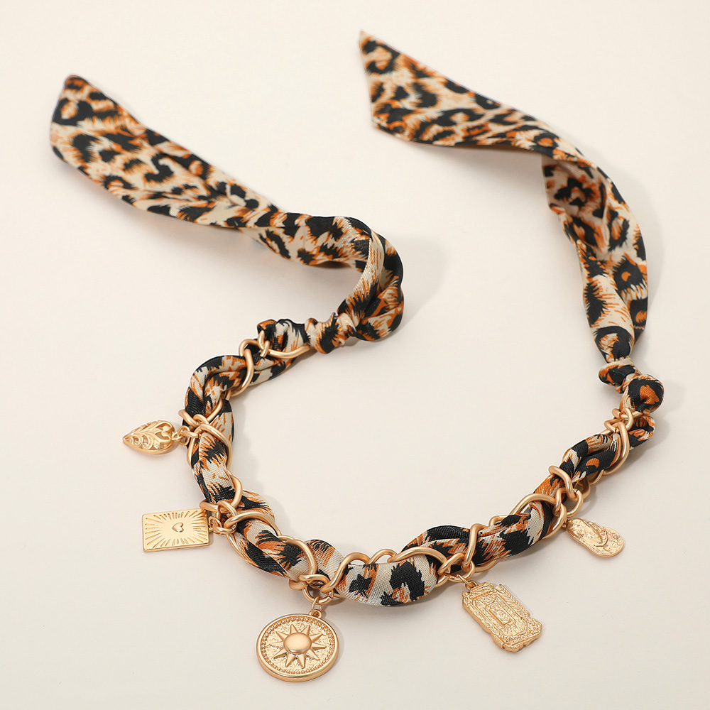 Details • Necklace Size : 29" L • Decor Size : 1.2" L • Adjustable • Make a stylish statement with this charm chain necklace featuring a patterned fabric accent intertwined through golden links. Decorated with symbolic pendants, it offers a perfect mix of bold elegance and modern flair, ideal for day or evening wear. • Lead and Nickel Compliant