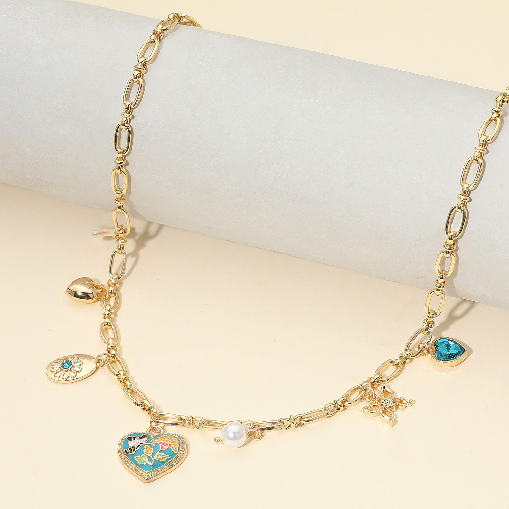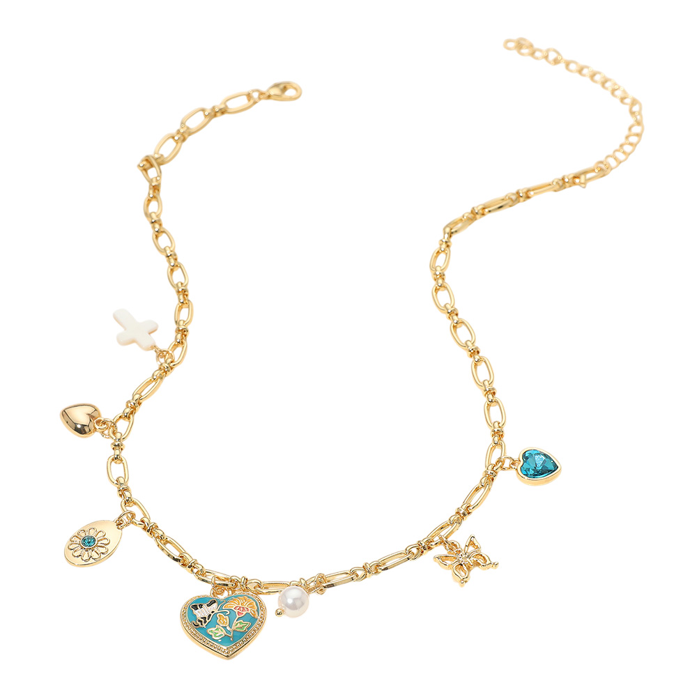 Butterfly Flower Enamel Detailed Heart Pendant Charm Station Necklace Butterfly Flower Enamel Detailed Heart Pendant Charm Station Necklace Butterfly Flower Enamel Detailed Heart Pendant Charm Station Necklace