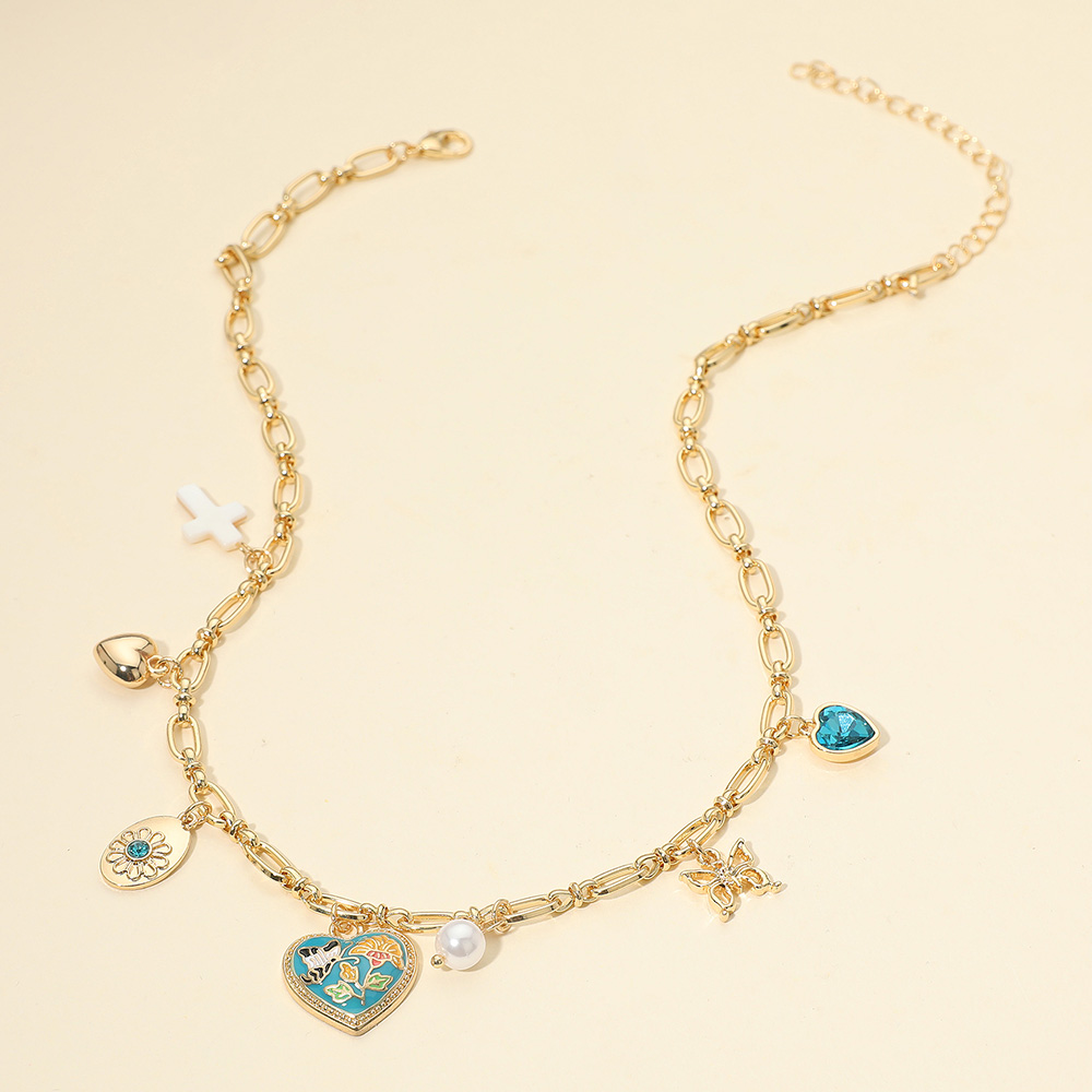 • Elevate your accessories with this charm necklace featuring a mix of symbolic pendants including hearts, floral details, a cross, and pearl accents. Designed on a bold chain, this statement piece adds personality, elegance, and versatility to both casual and dressy outfits.