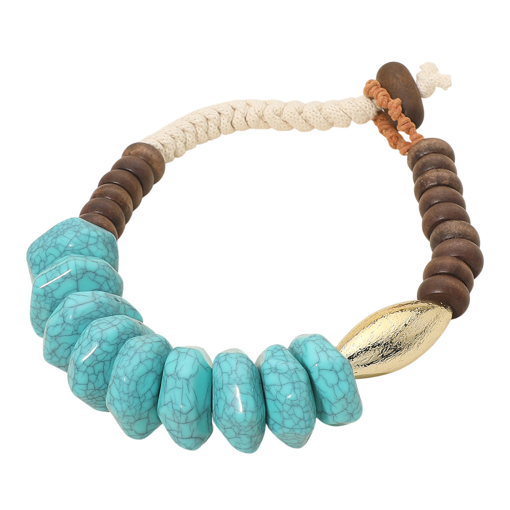 • Statement beaded bracelet designed with chunky organic-shaped beads and an adjustable cord closure for a comfortable, flexible fit. Bold silhouette adds texture and visual interest, making it perfect for everyday styling or layering. Ideal for boutiques seeking unique, artisan-inspired accessories with a modern, fashion-forward edge.