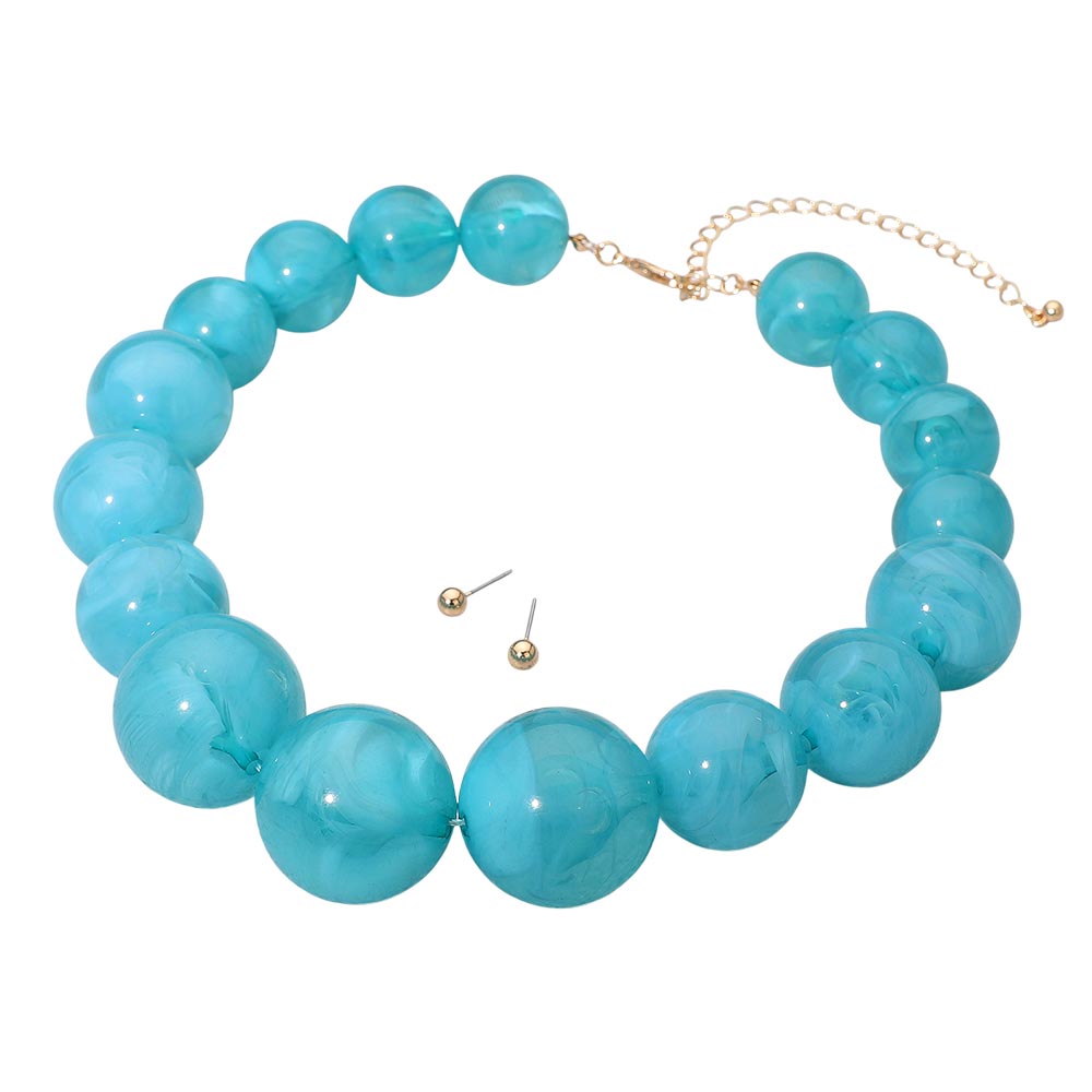 Chunky Marbled Ball Beaded Bold Statement Necklace