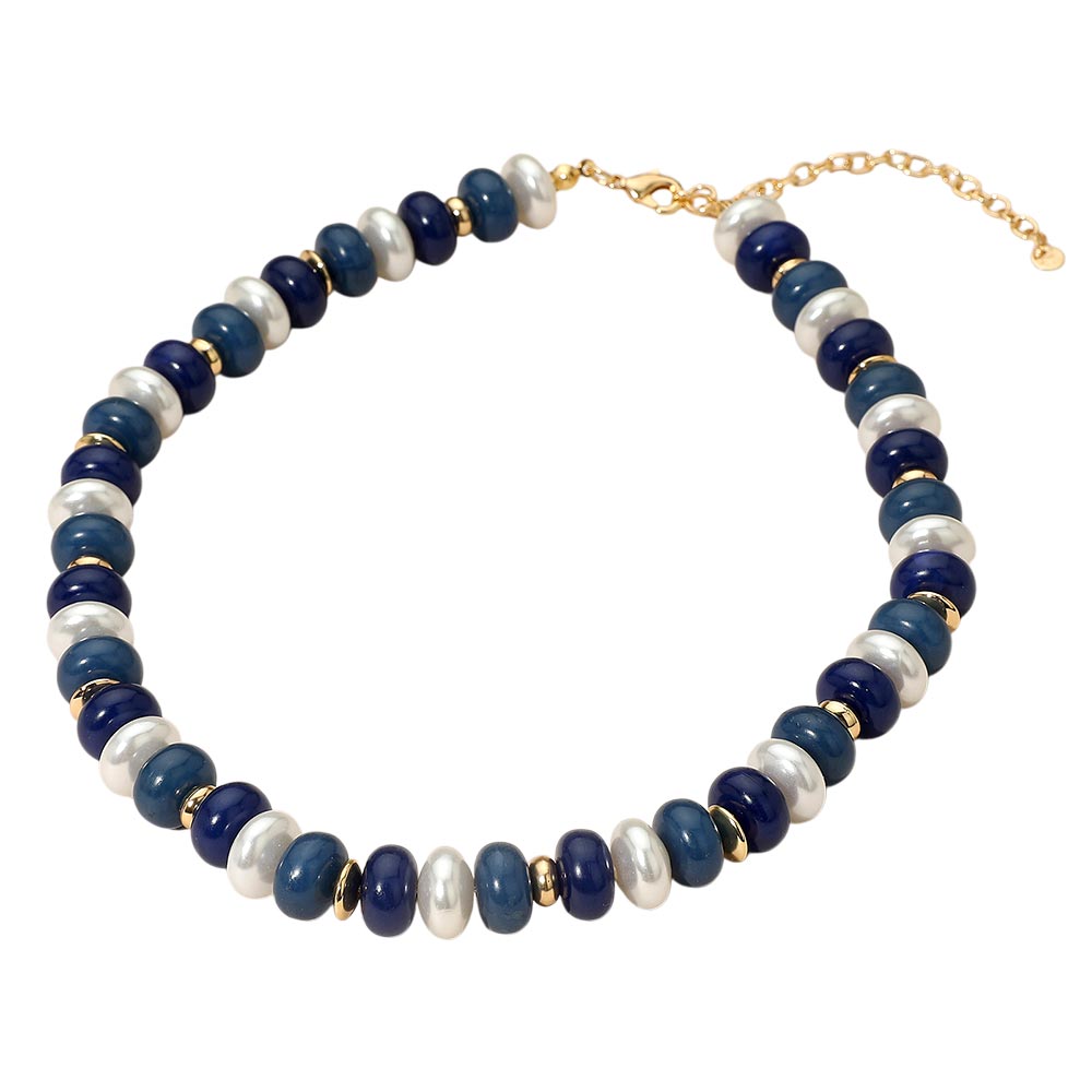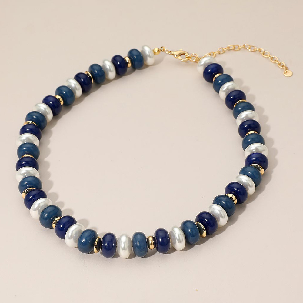 Chunky Marbled Beads Pearl Beaded Statement Necklace