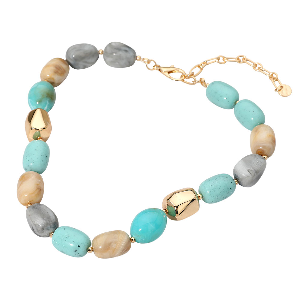 Chunky Marbled Resin Metal Pebble Beaded Necklace Chunky Marbled Resin Metal Pebble Beaded Necklace