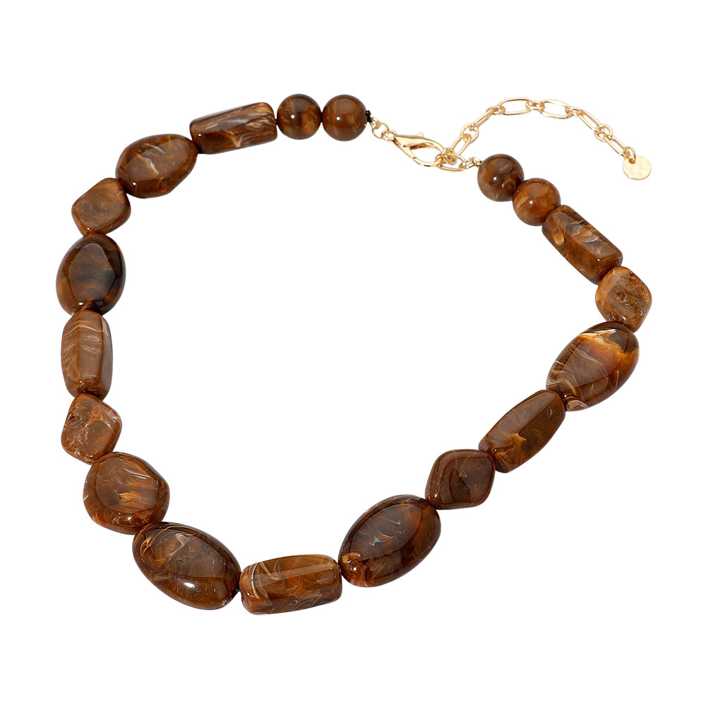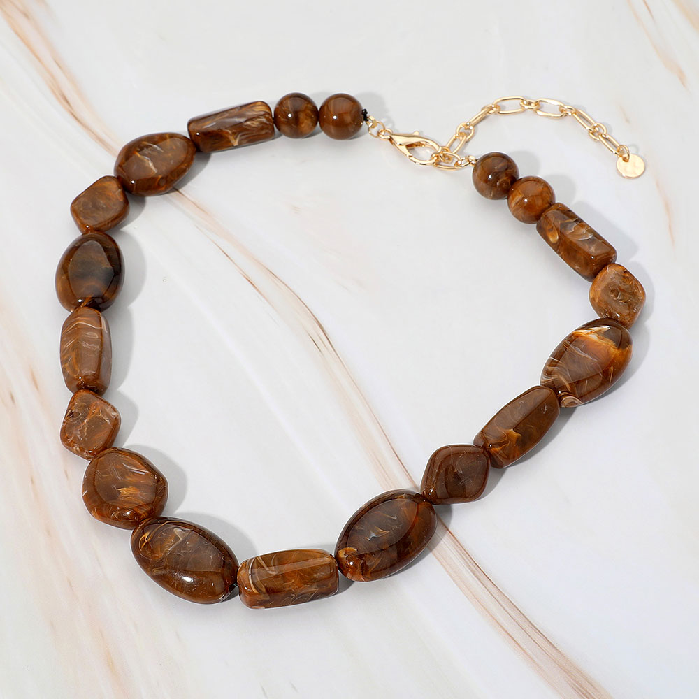 Chunky Marbled Resin Multi Shape Pebble Beaded Necklace Chunky Marbled Resin Multi Shape Pebble Beaded Necklace