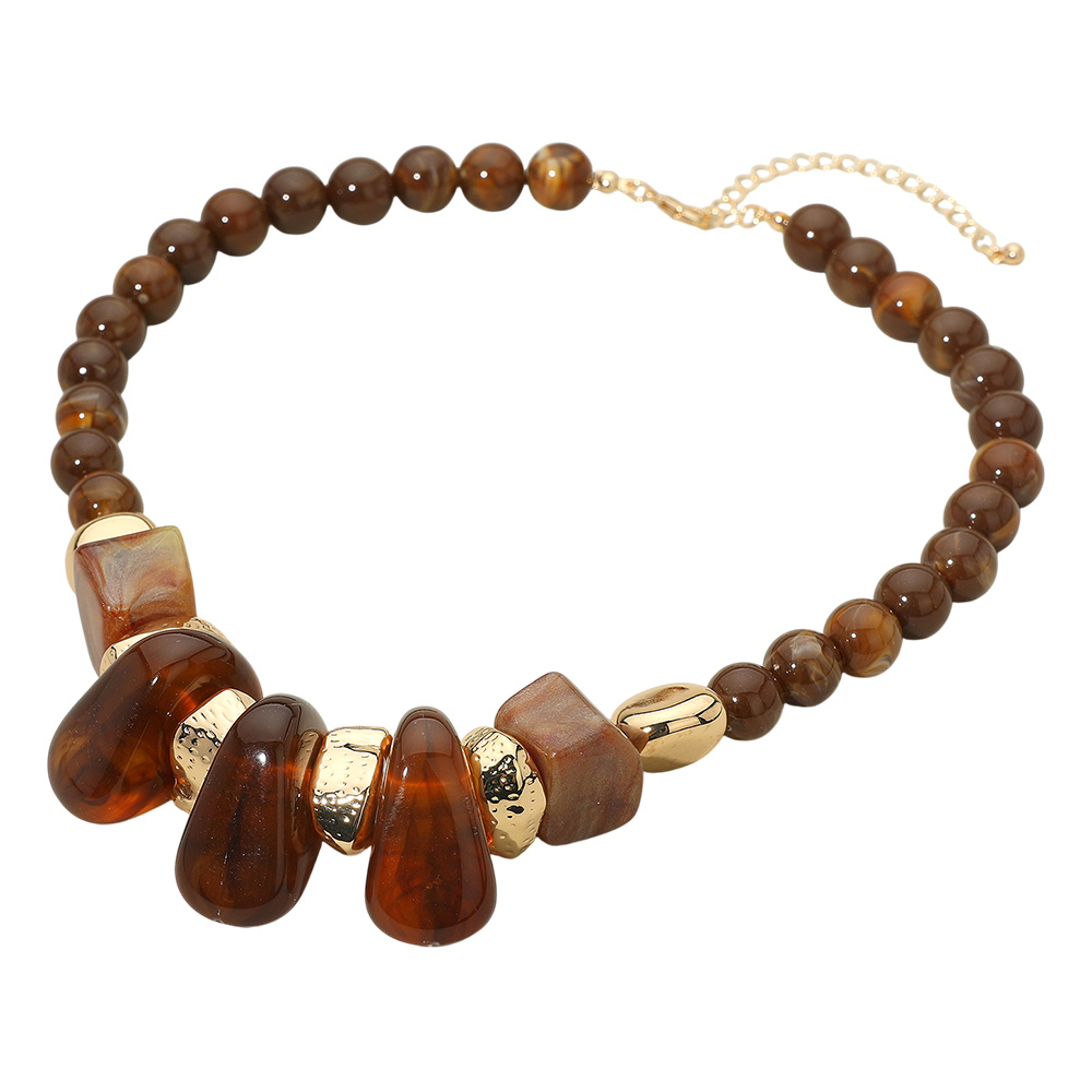 Chunky Marbled Resin Pebble Beaded Statement Necklace Chunky Marbled Resin Pebble Beaded Statement Necklace