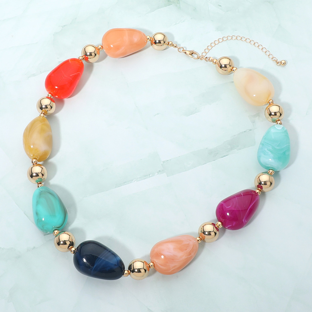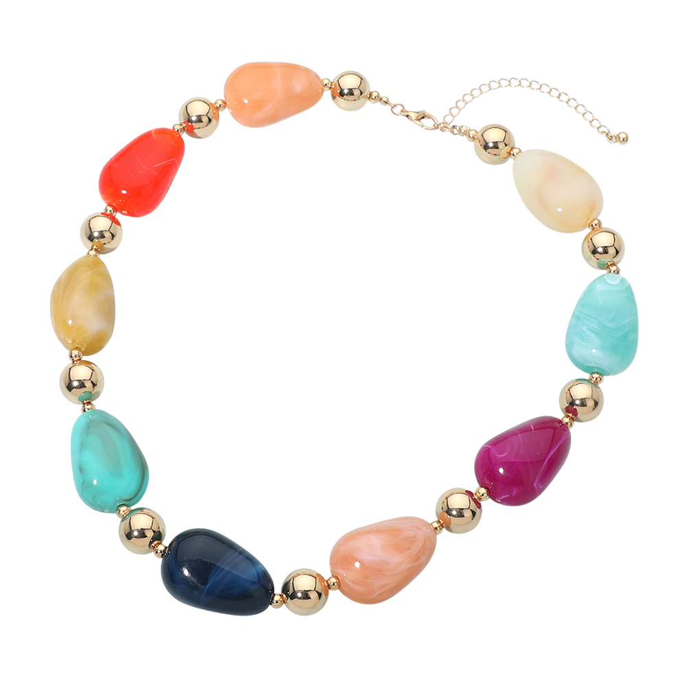 Details • Necklace Size : 18" + 3" L • Decor Size : 0.75" L • Eye-catching statement necklace designed with smooth rounded beads and polished accent spheres for balanced dimension. The structured yet fluid silhouette makes it easy to style with casual looks or elevated outfits, offering a refined focal point that enhances layering or stands out beautifully on its own. • Lead and Nickel Compliant