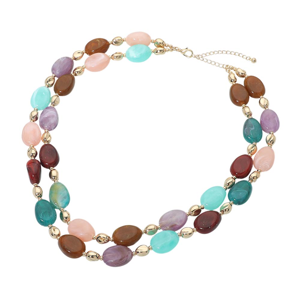 Chunky Resin Oval Marbled Pebble Beaded Layered Necklace