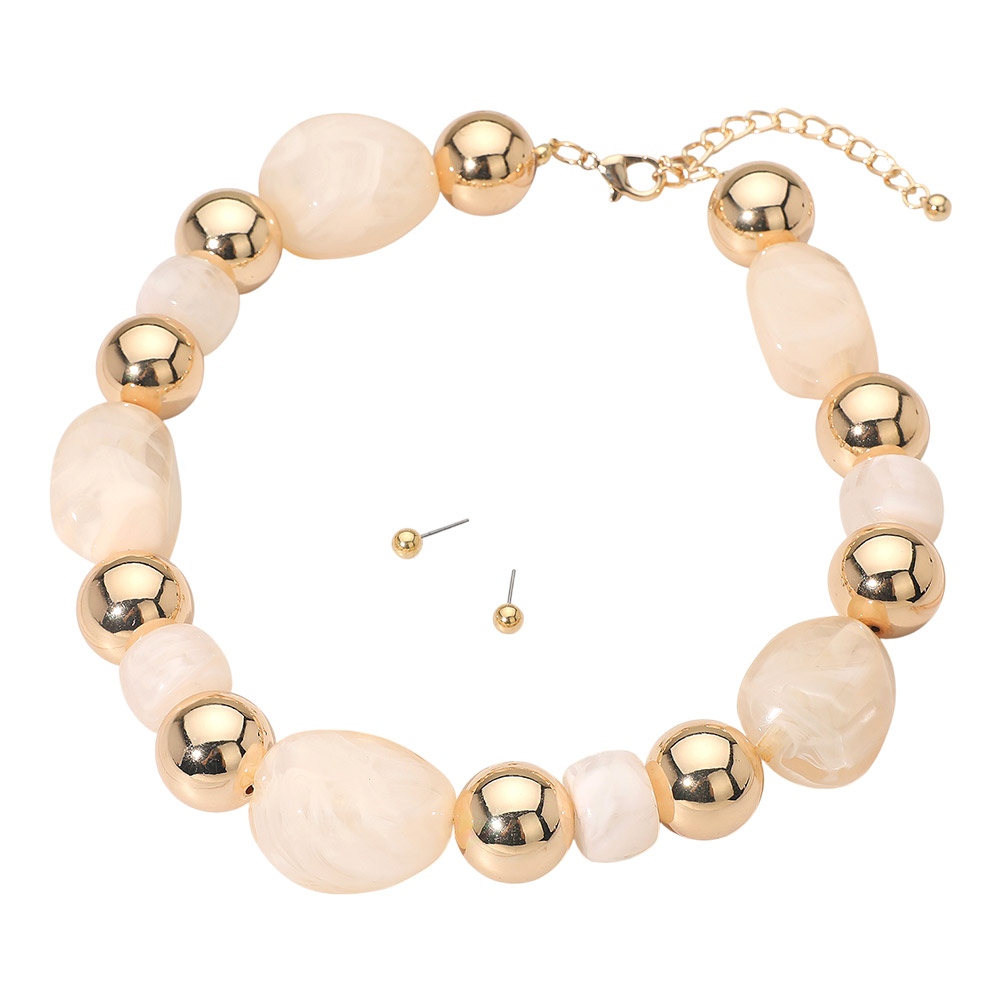 Chunky Resin Pebble Metal Ball Beaded Statement Necklace