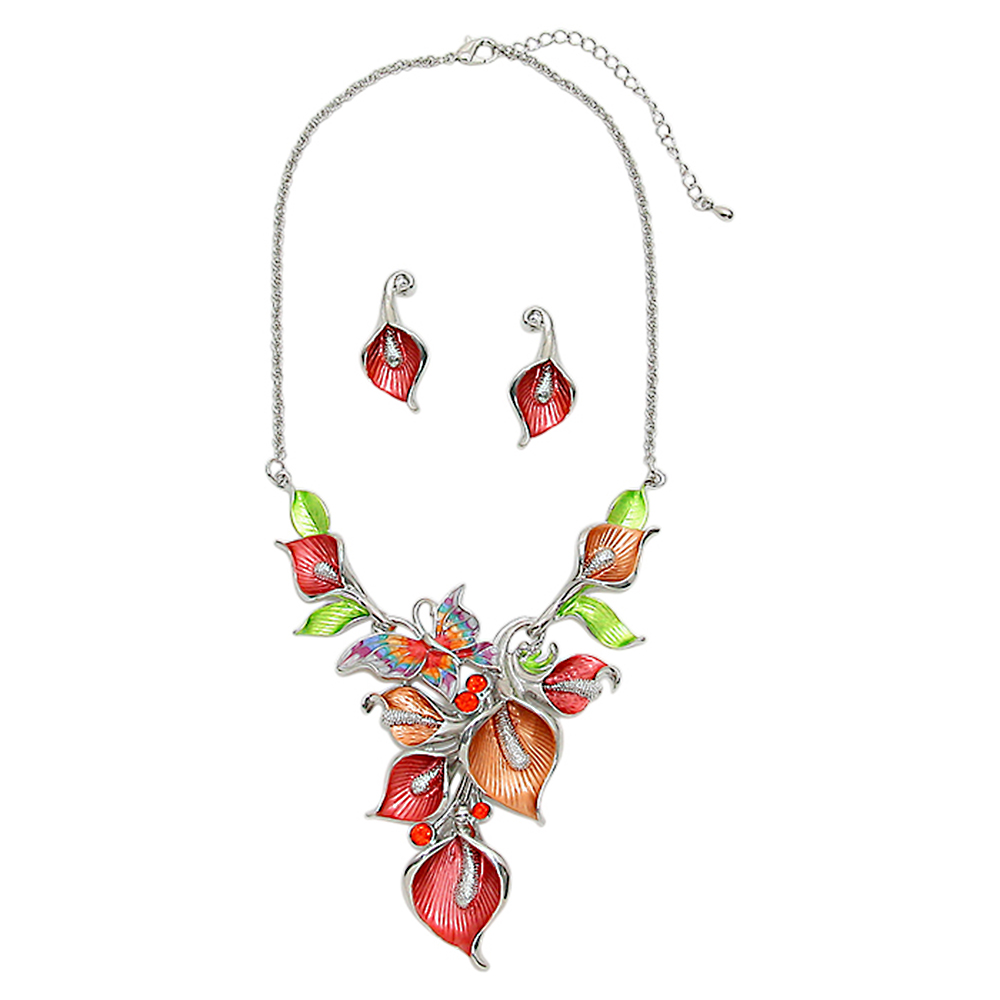 Oversized Enamel Painted Rim Hammered Metal Petal Flower Earrings