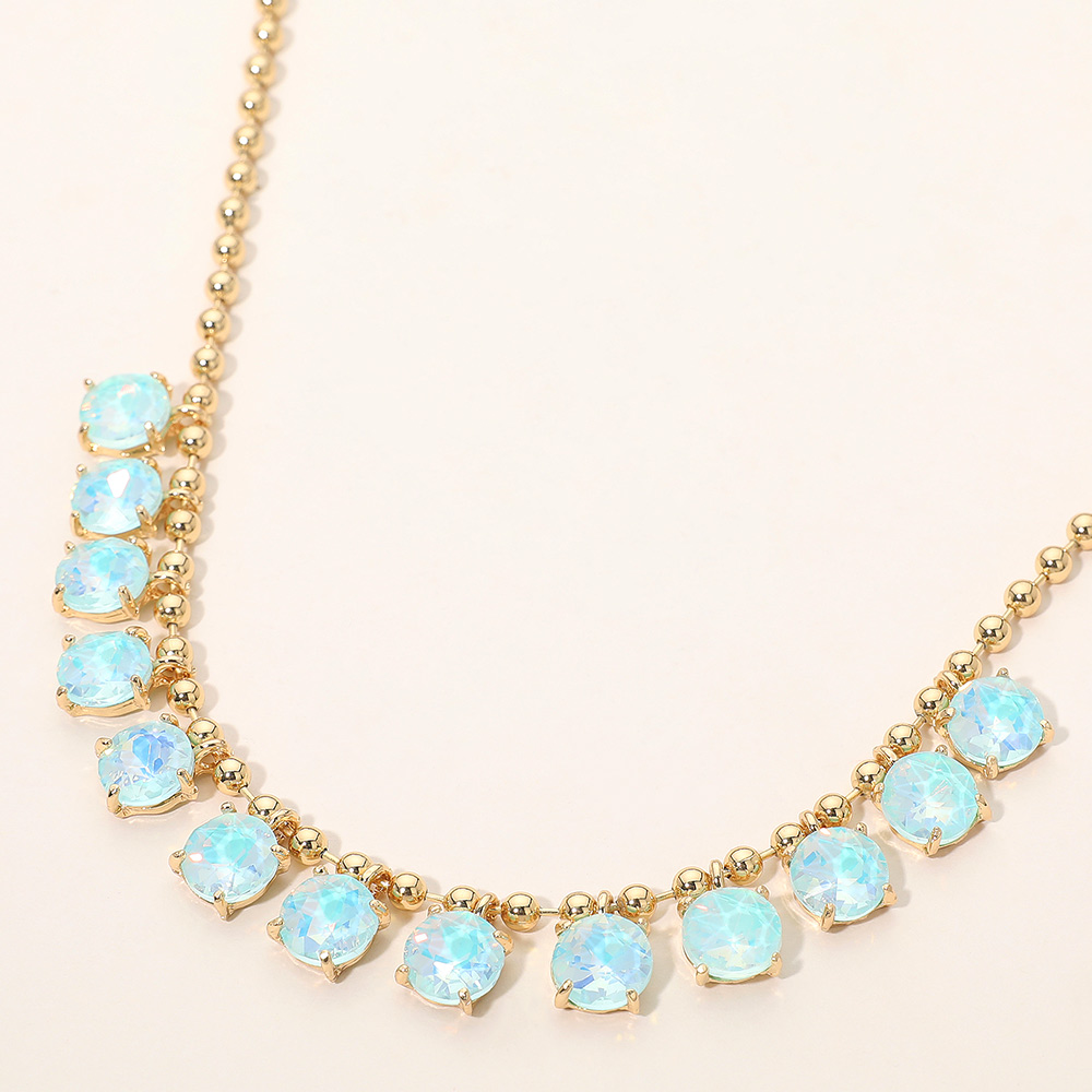 Details • Necklace Size : 15.5" + 3" L • Decor Size : 0.5" L • Elegant necklace featuring a delicate beaded chain accented with faceted round stones arranged along the neckline. Designed to add refined sparkle and balanced detail, this versatile piece suits everyday wear, special occasions, gifting, and boutique collections with a timeless, polished appeal. • Lead and Nickel Compliant