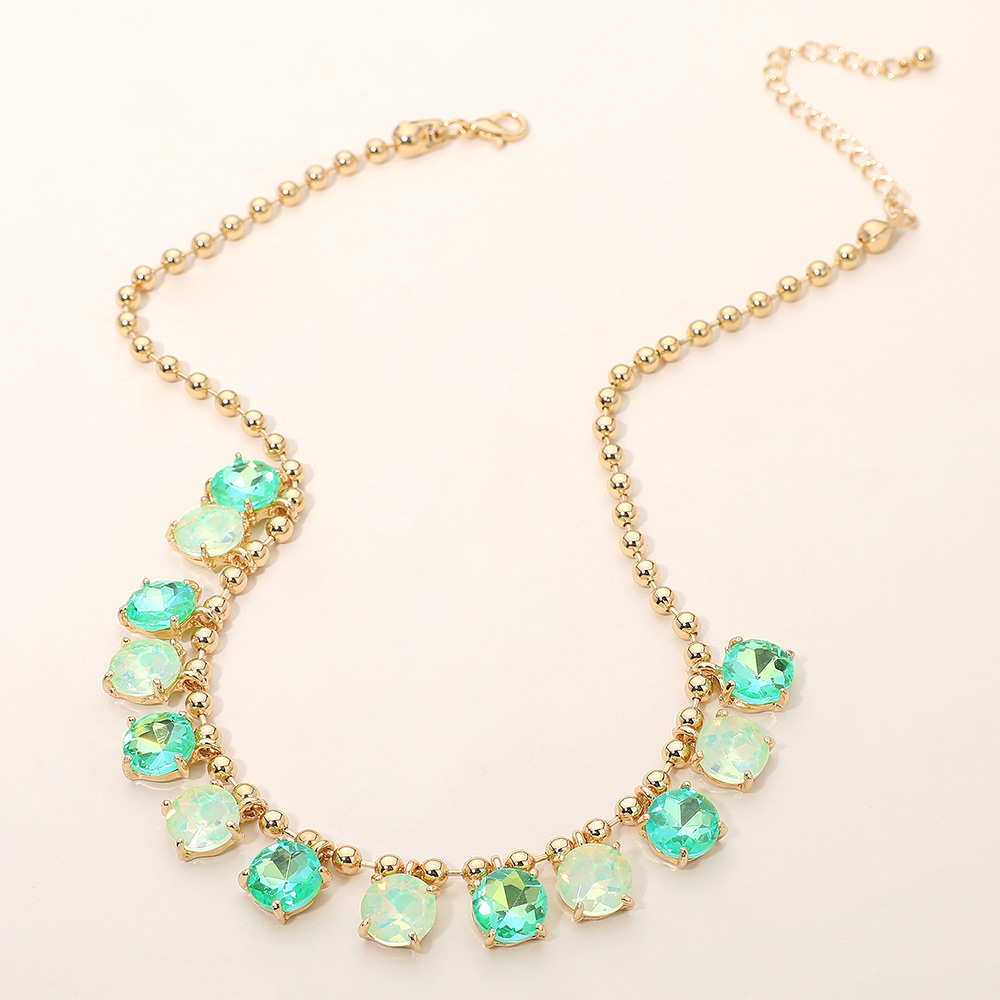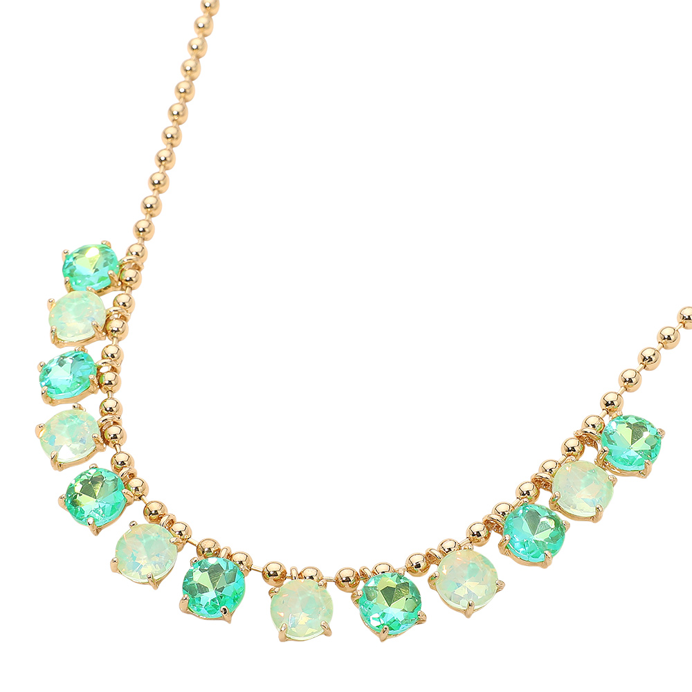 • Elegant necklace featuring a delicate beaded chain accented with faceted round stones arranged along the neckline. Designed to add refined sparkle and balanced detail, this versatile piece suits everyday wear, special occasions, gifting, and boutique collections with a timeless, polished appeal.
