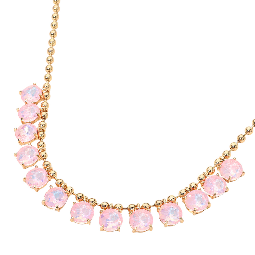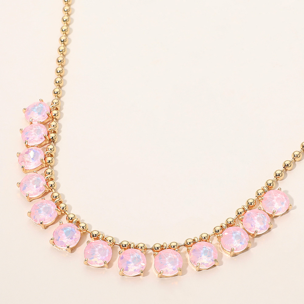 • Elegant necklace featuring a delicate beaded chain accented with faceted round stones arranged along the neckline. Designed to add refined sparkle and balanced detail, this versatile piece suits everyday wear, special occasions, gifting, and boutique collections with a timeless, polished appeal.