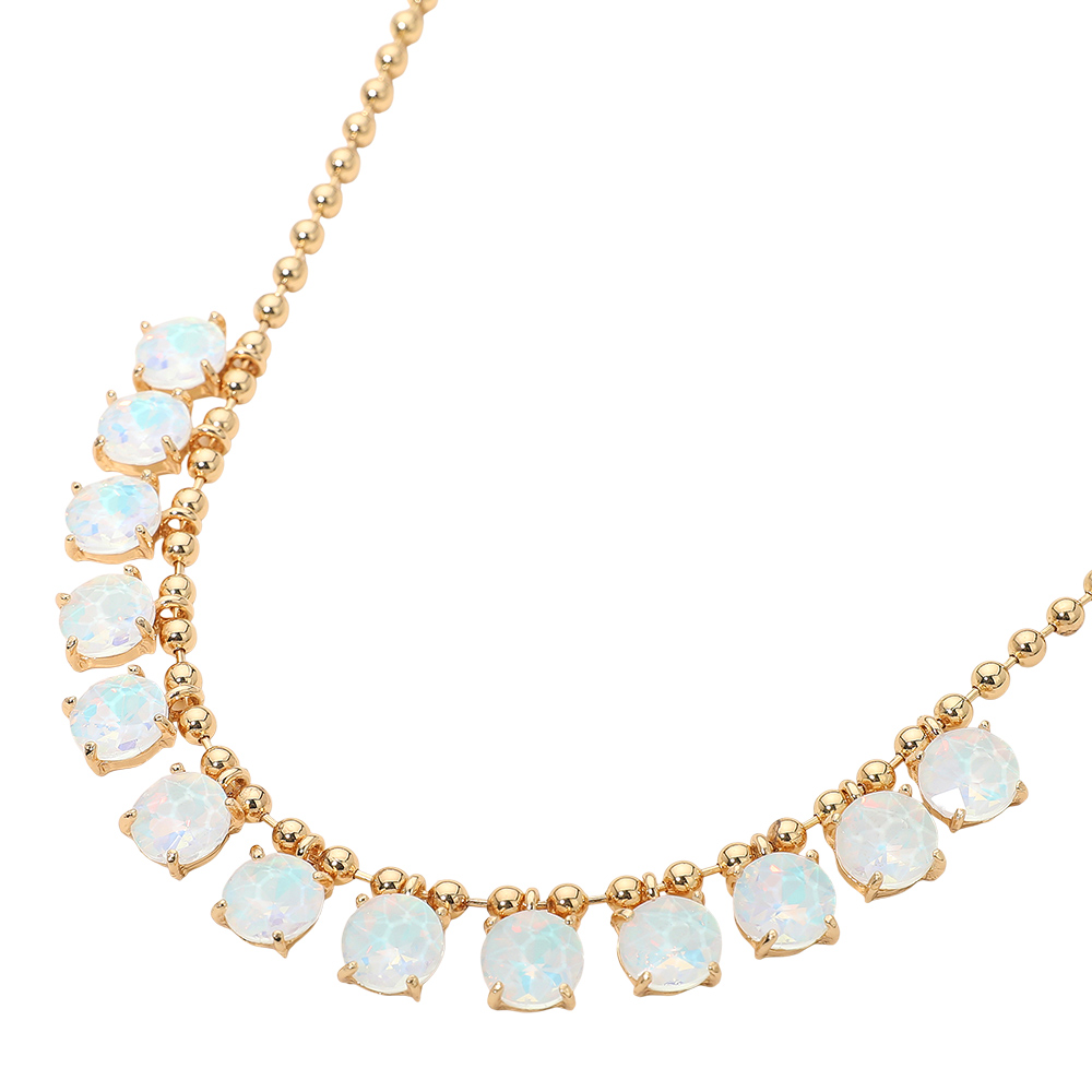 • Elegant necklace featuring a delicate beaded chain accented with faceted round stones arranged along the neckline. Designed to add refined sparkle and balanced detail, this versatile piece suits everyday wear, special occasions, gifting, and boutique collections with a timeless, polished appeal.