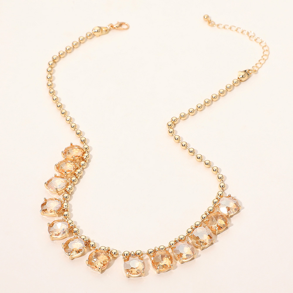 • Elegant necklace featuring a delicate beaded chain accented with faceted round stones arranged along the neckline. Designed to add refined sparkle and balanced detail, this versatile piece suits everyday wear, special occasions, gifting, and boutique collections with a timeless, polished appeal.