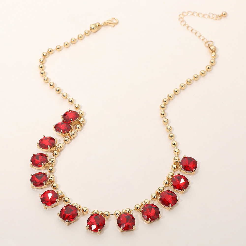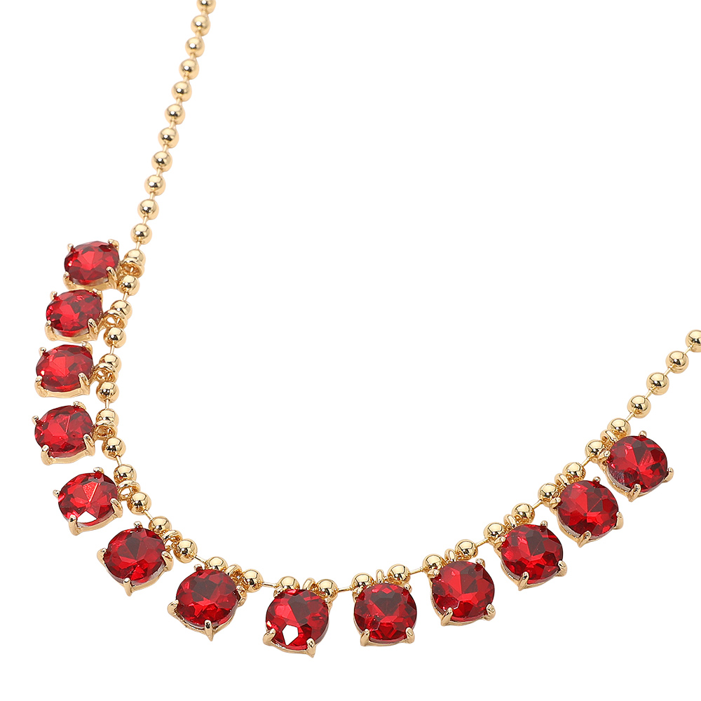 Details • Necklace Size : 15.5" + 3" L • Decor Size : 0.5" L • Elegant necklace featuring a delicate beaded chain accented with faceted round stones arranged along the neckline. Designed to add refined sparkle and balanced detail, this versatile piece suits everyday wear, special occasions, gifting, and boutique collections with a timeless, polished appeal. • Lead and Nickel Compliant