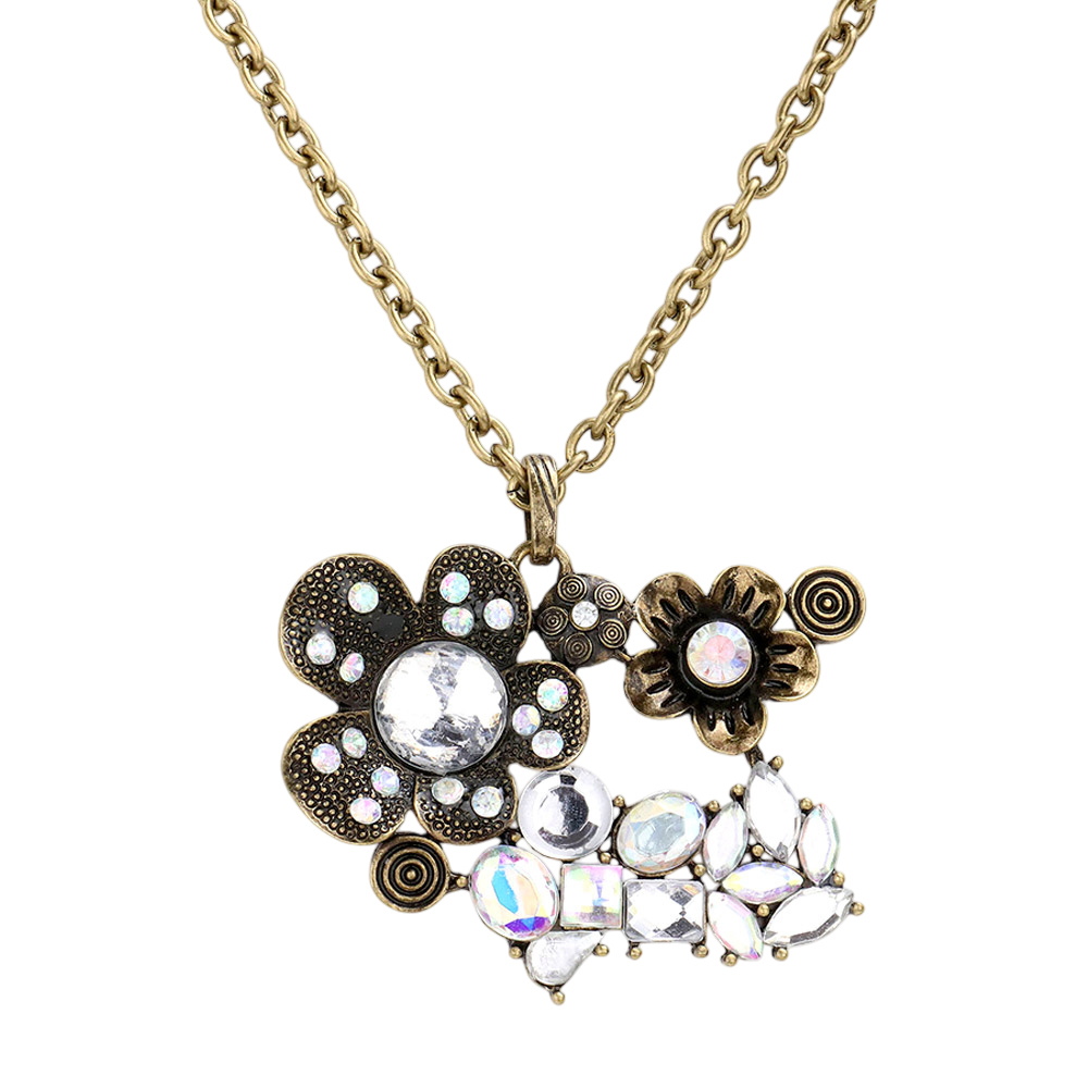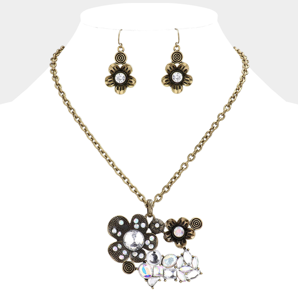 Teardrop Stone Cluster Accent Rhinestone Paved Floral Embellished Collar Statement Evening Necklace