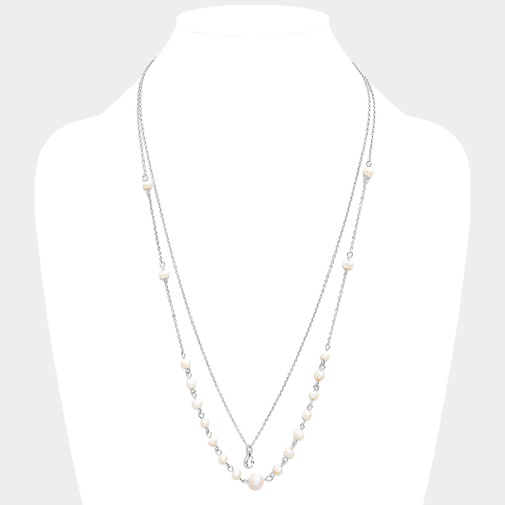 Teardrop Pearl Accented Leaf Cluster Necklace