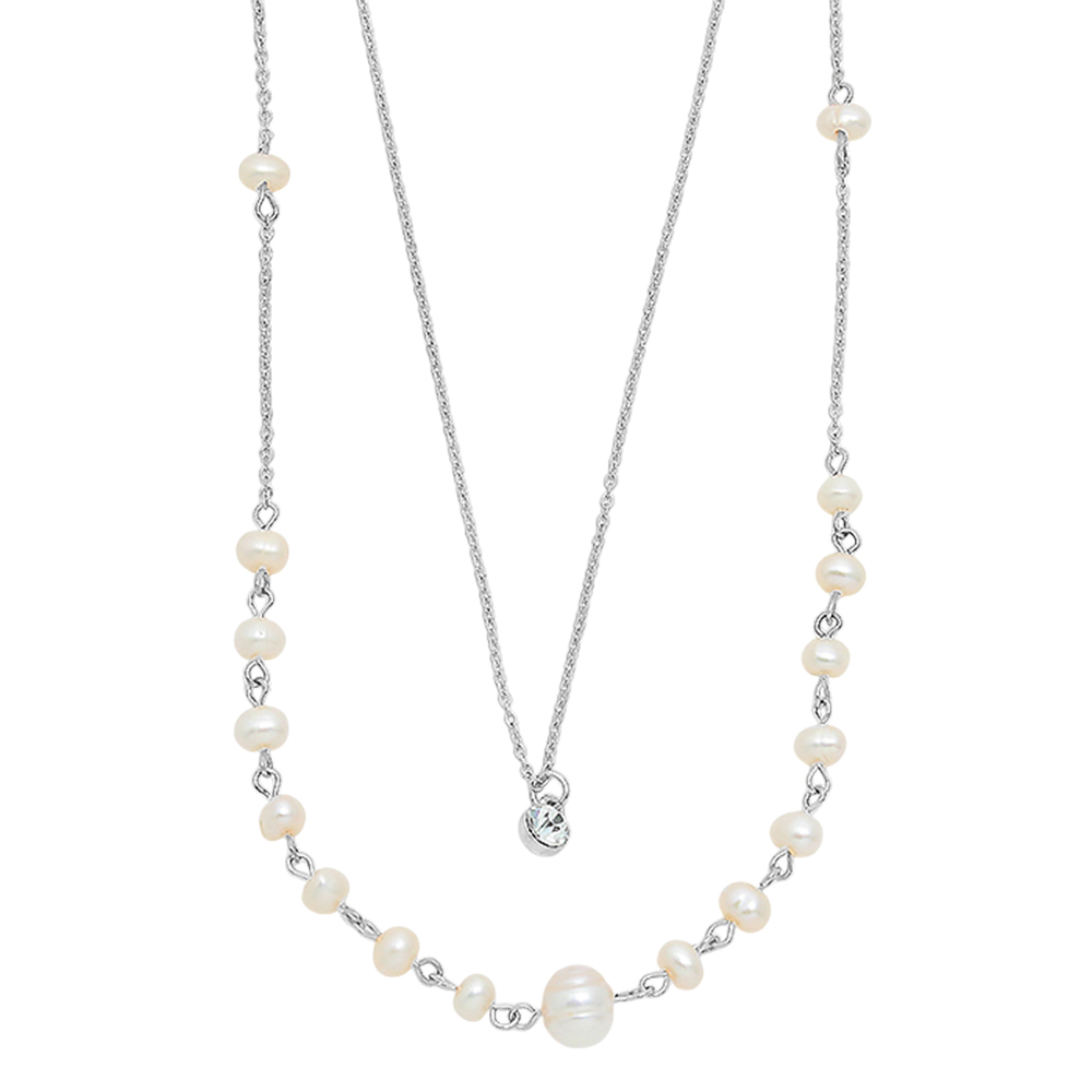 14K Gold Plated CZ Heart Stone Pearl Cluster Metal Cross Charm Station Necklace