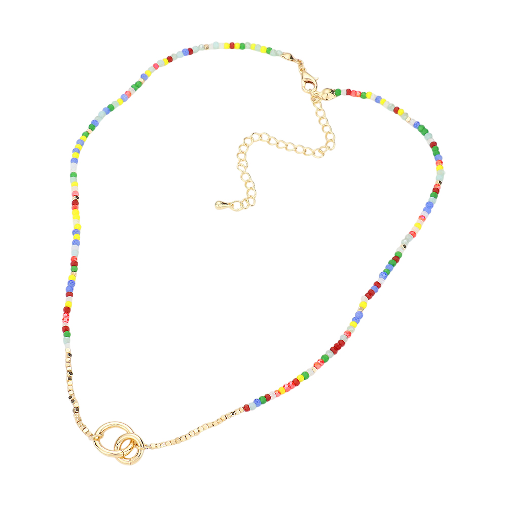 Double Open Metal Circle Link Pendant Faceted Beaded Necklace
