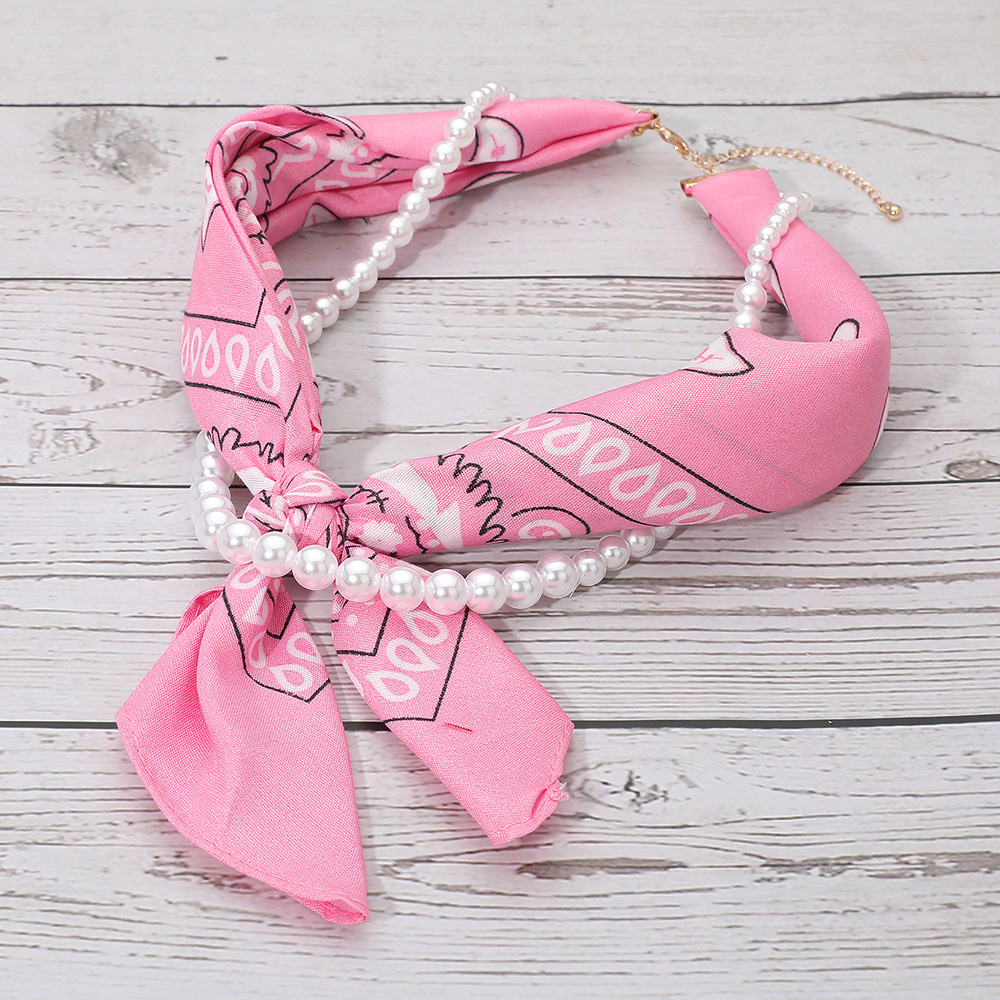 Details • Necklace Size : 20" + 3" L • Decor Size : 4" L • Print may vary • Turn heads with this pearl and scarf statement necklace, blending classic elegance with bold style. The chic combination of lustrous pearls and a patterned scarf creates a versatile accessory that elevates any outfit, perfect for casual charm or standout sophistication. • Lead and Nickel Compliant