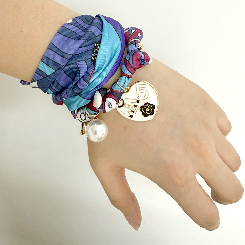 Fashion Item Pearl Charm Station Fabric Scarf Necklace Adjustable Bracelet Bag Charm