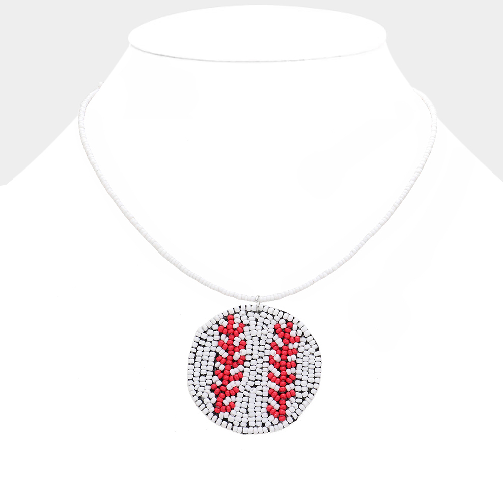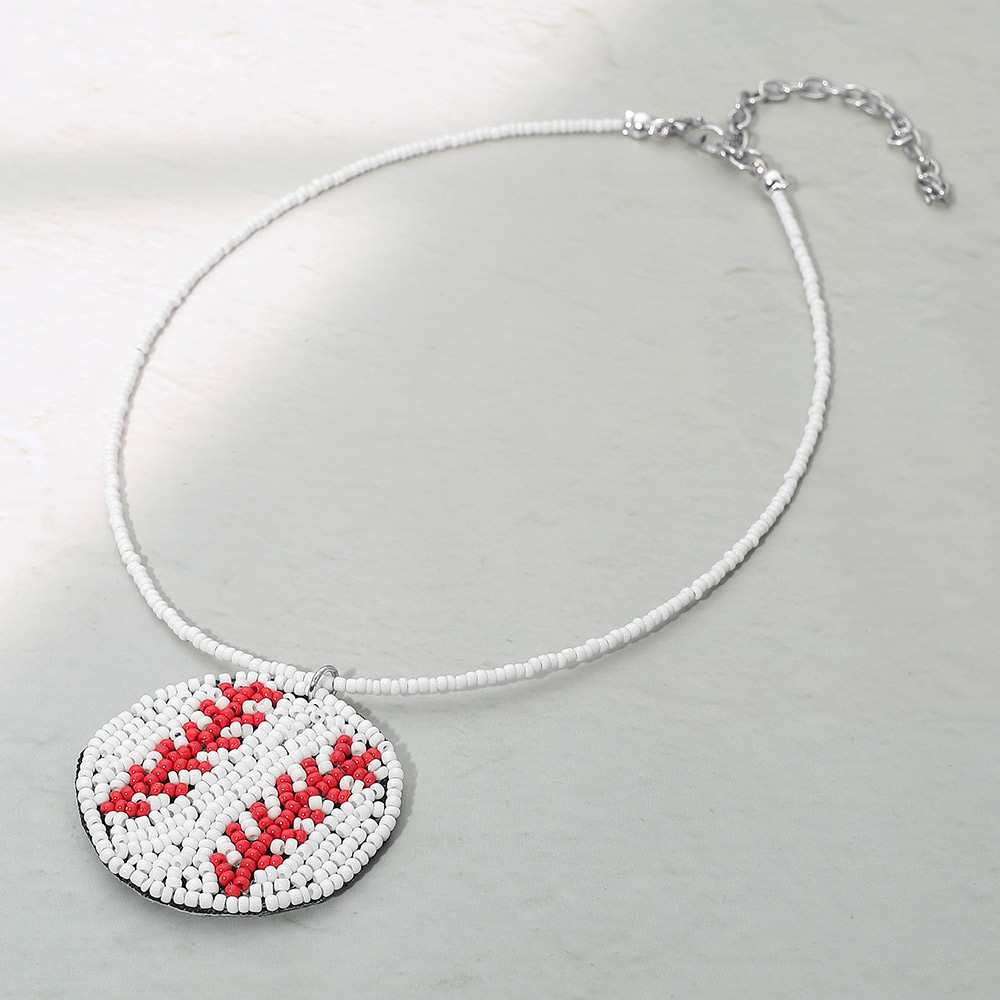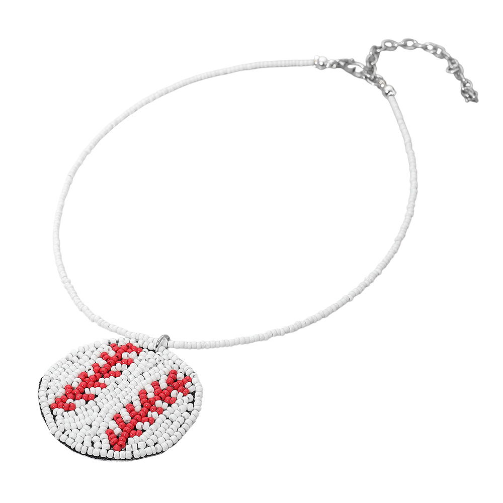 • Sport-inspired necklace featuring a round baseball pendant handcrafted with tiny seed beads. A stylish way to show team spirit or complete a gameday look. Lightweight, fun, and easy to wear, this necklace adds sporty charm to casual outfits and fan gear.