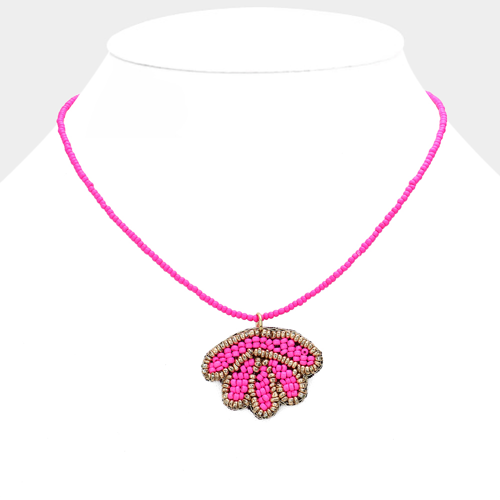 Felt Back Seed Beaded Shell Pendant Necklace
