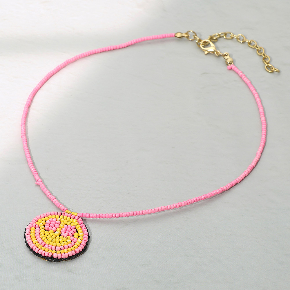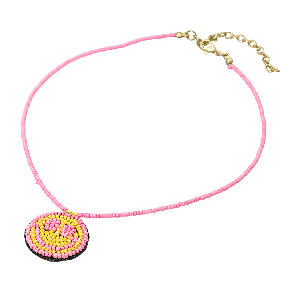 • Playful smiley face pendant necklace designed with tiny seed beads for a fun and uplifting look. Perfect for adding a touch of positivity to casual outfits, this lightweight piece brings a cheerful and trendy vibe to everyday wear or layered jewelry styles.