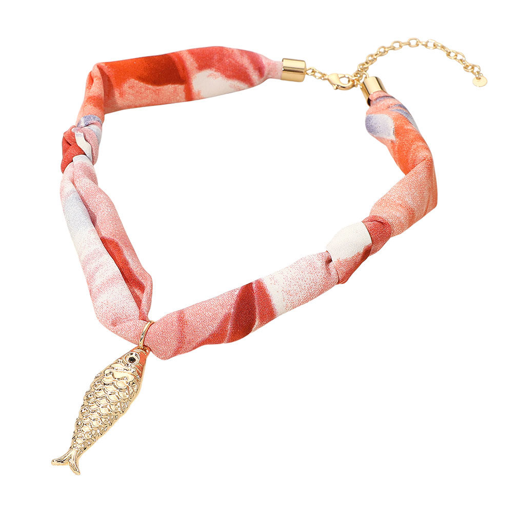 Fish Pendant Accent Fabric Scarf Necklace Fish Pendant Accent Fabric Scarf Necklace