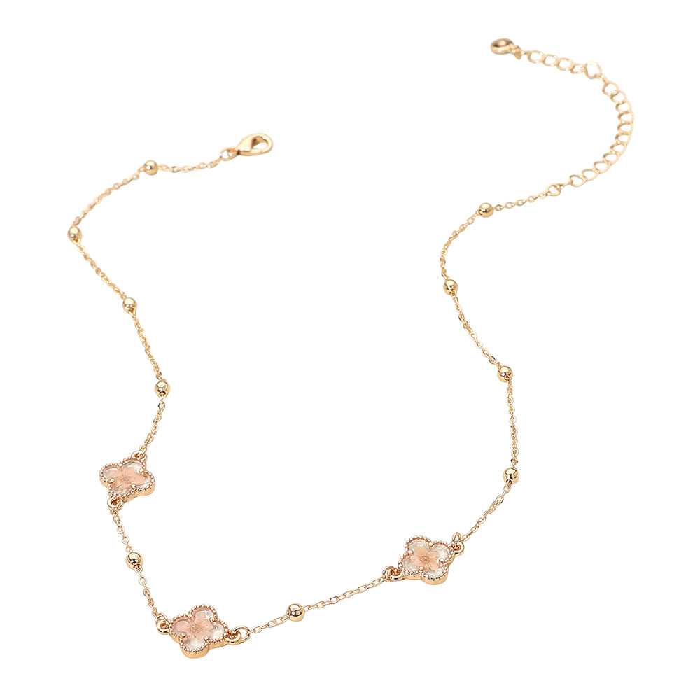 Floral Encased Quatrefoil Charm Station Necklace Floral Encased Quatrefoil Charm Station Necklace Floral Encased Quatrefoil Charm Station Necklace