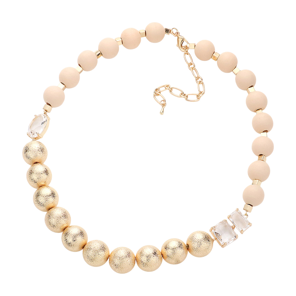 Frosted Metal Wood Ball Lucite Stone Link Necklace