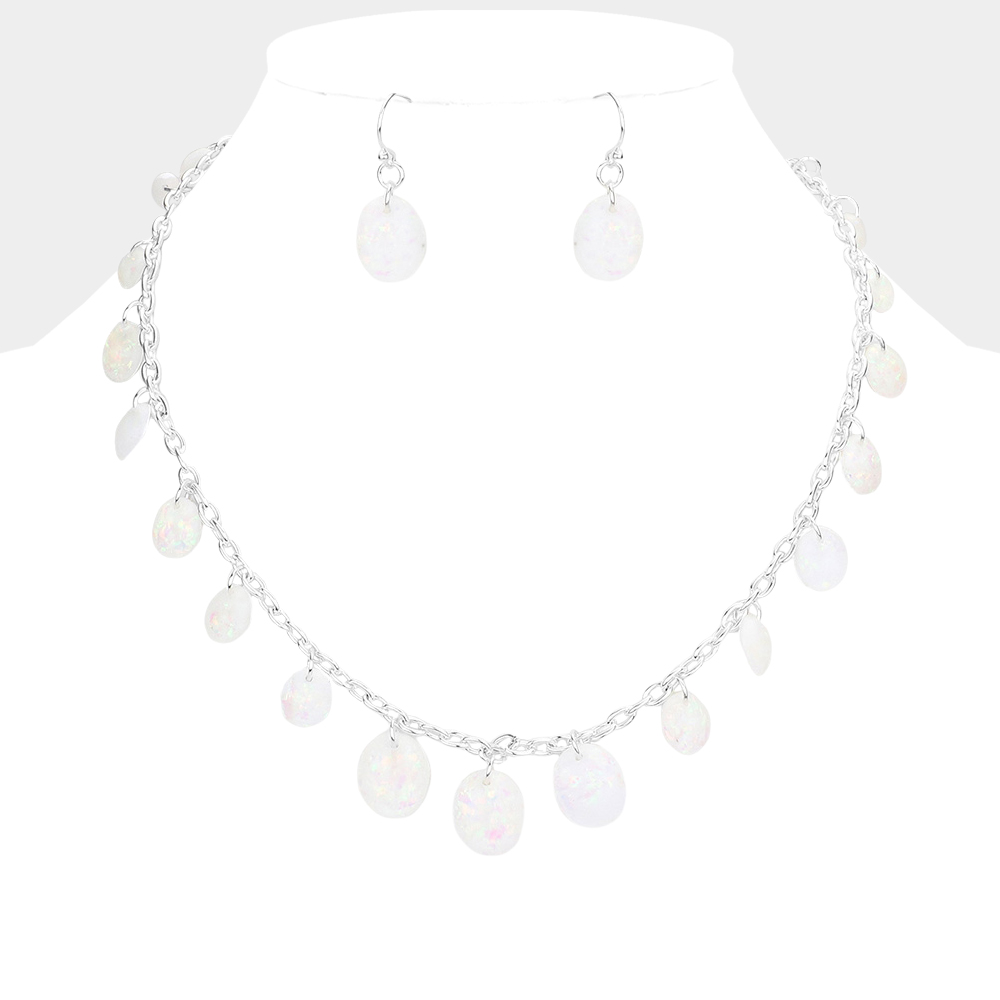 Marquise Stone Cluster Pearl Embellished Leaf Branch Necklace