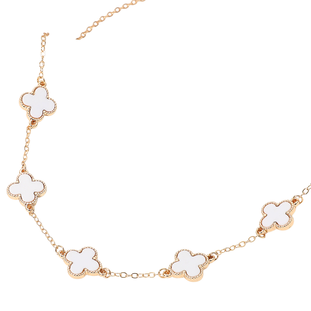 Gold Dipped Mother of Pearl Quatrefoil Station Necklace