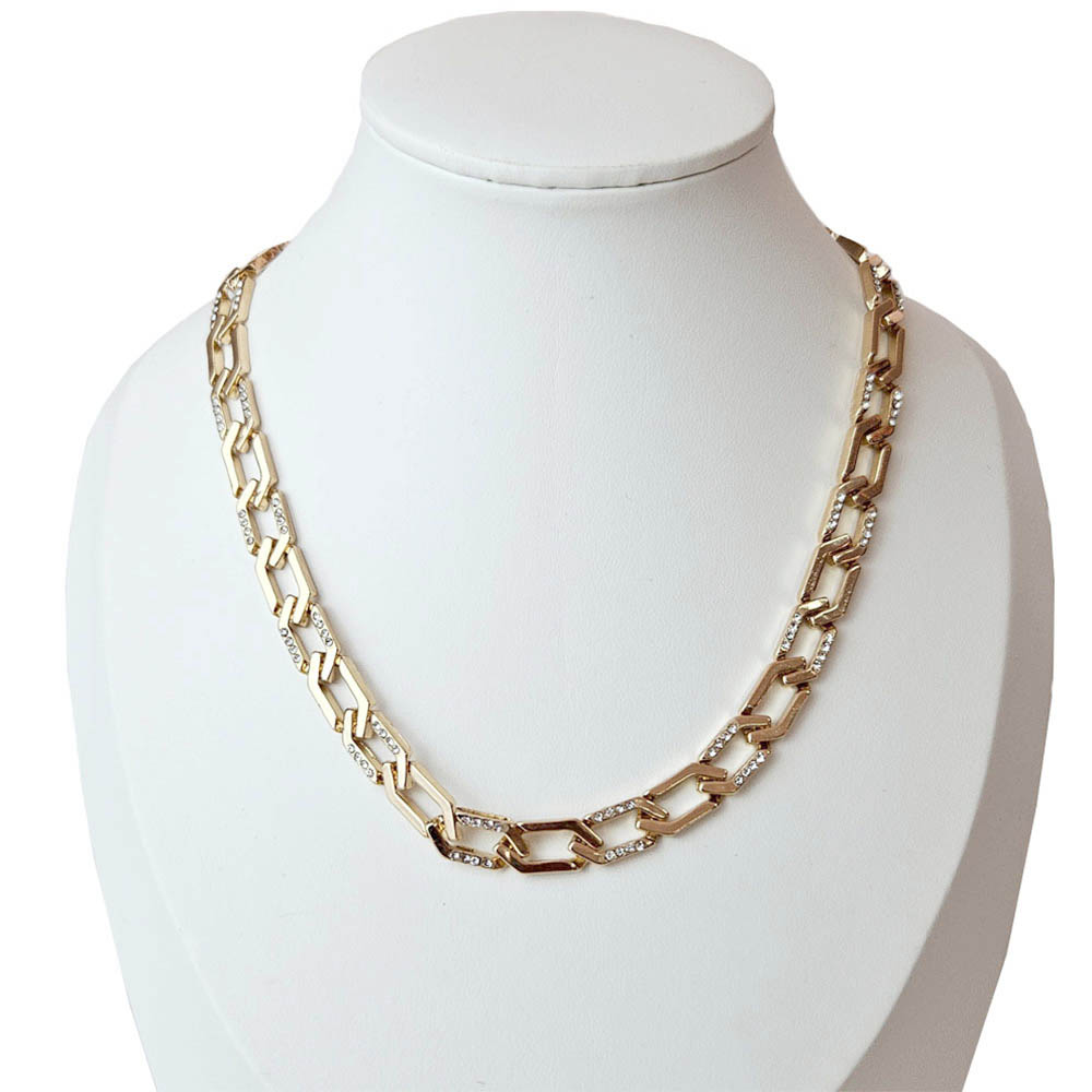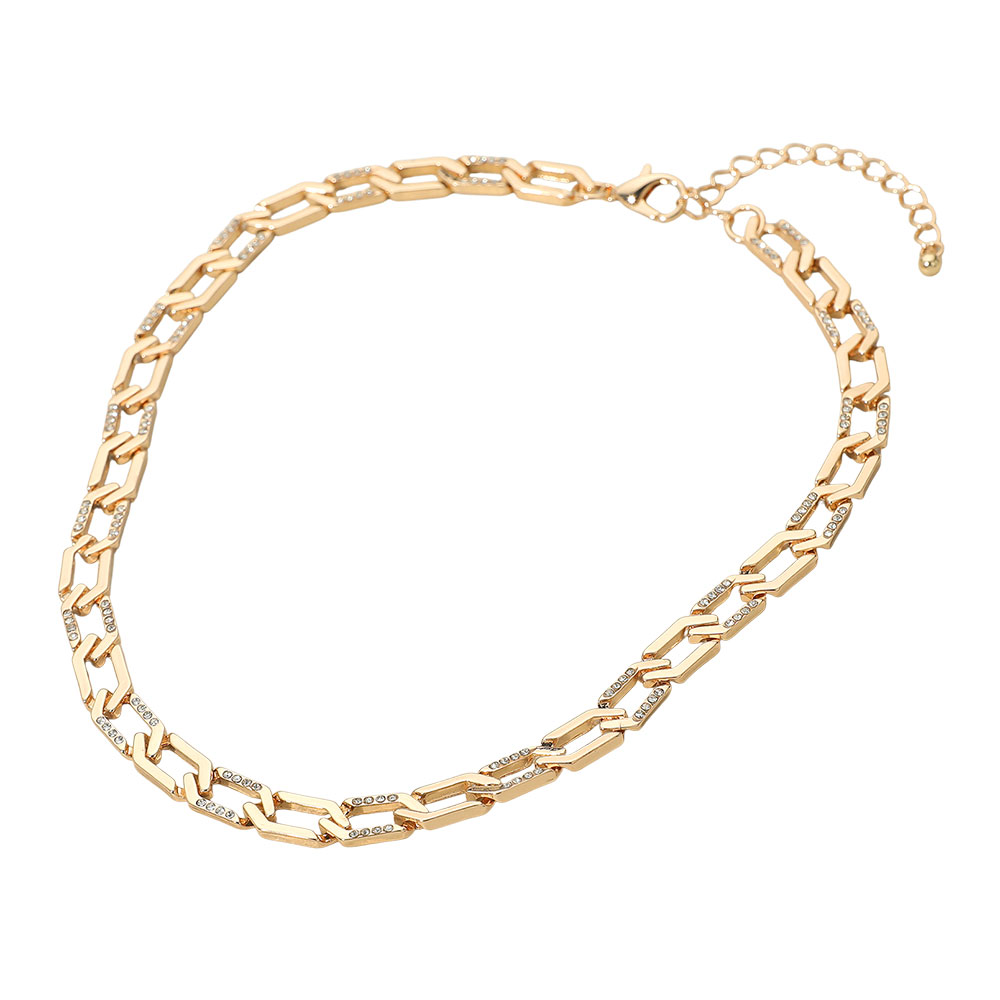 Gold Dipped Stone Paved Geometric Link Chain Necklace Gold Dipped Stone Paved Geometric Link Chain Necklace Gold Dipped Stone Paved Geometric Link Chain Necklace