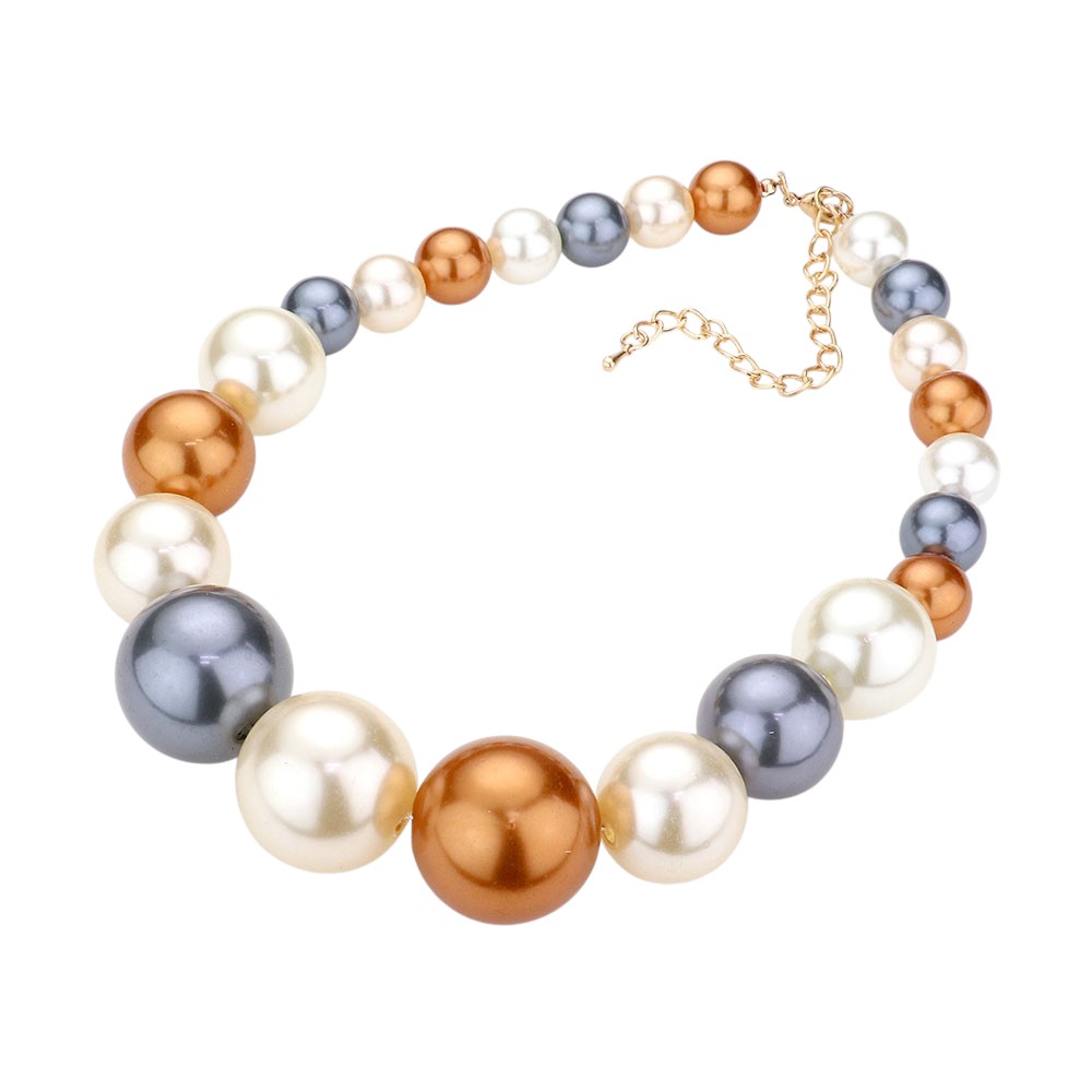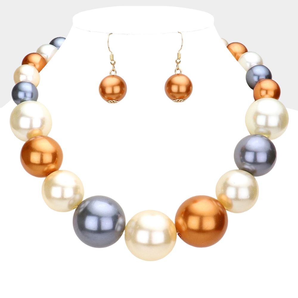 Details • Necklace Size : 18" + 4" L • Decor Size : 1.2" L • Earring Size : 1.5" L • Elegant graduated bead necklace paired with matching drop earrings for a coordinated, polished look. Designed to create visual balance and timeless appeal, this jewelry set is ideal for statement styling, special occasions, and boutique collections seeking classic silhouettes with versatile, easy-to-wear elegance. • Lead and Nickel Compliant